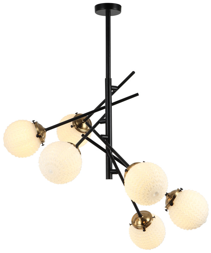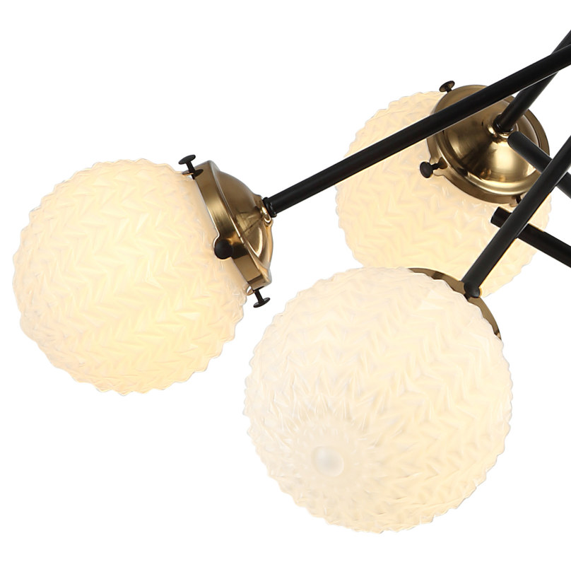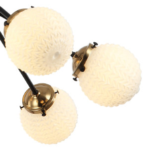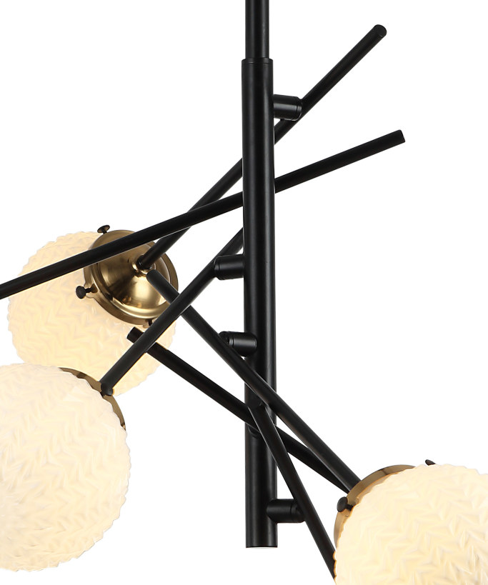 Люстра на штанге из коллекции Sinus выполнена из металла, окрашенного в черный цвет, и декорирована плафонами из белого матового фактурного стекла. Держатели плафонов гальванизированы в цвет бронзы. Конструкция люстры позволяет менять направление угла положения рожков. Премиальное качество и неповторимыи? дизаи?н светильников идеально подои?дут в современные и дизайнерские интерьеры.