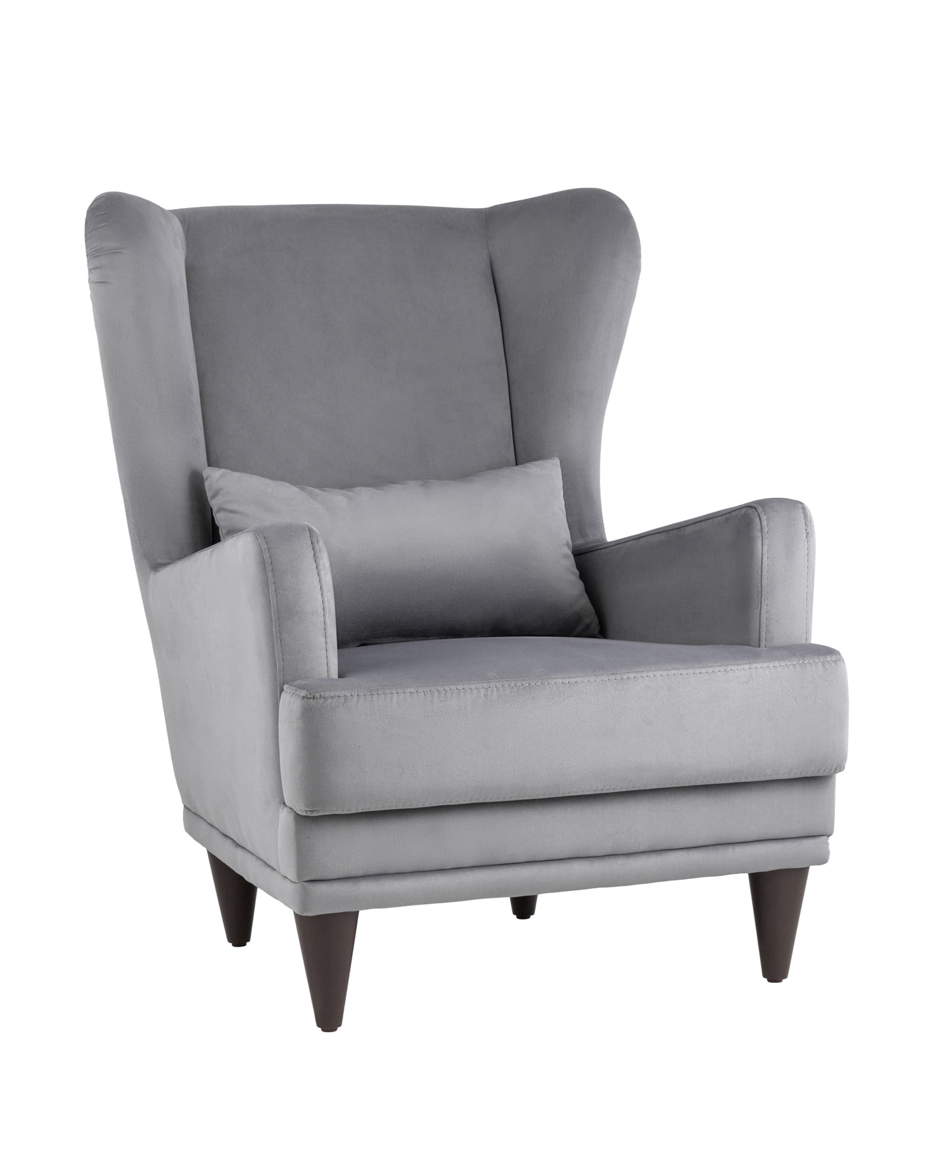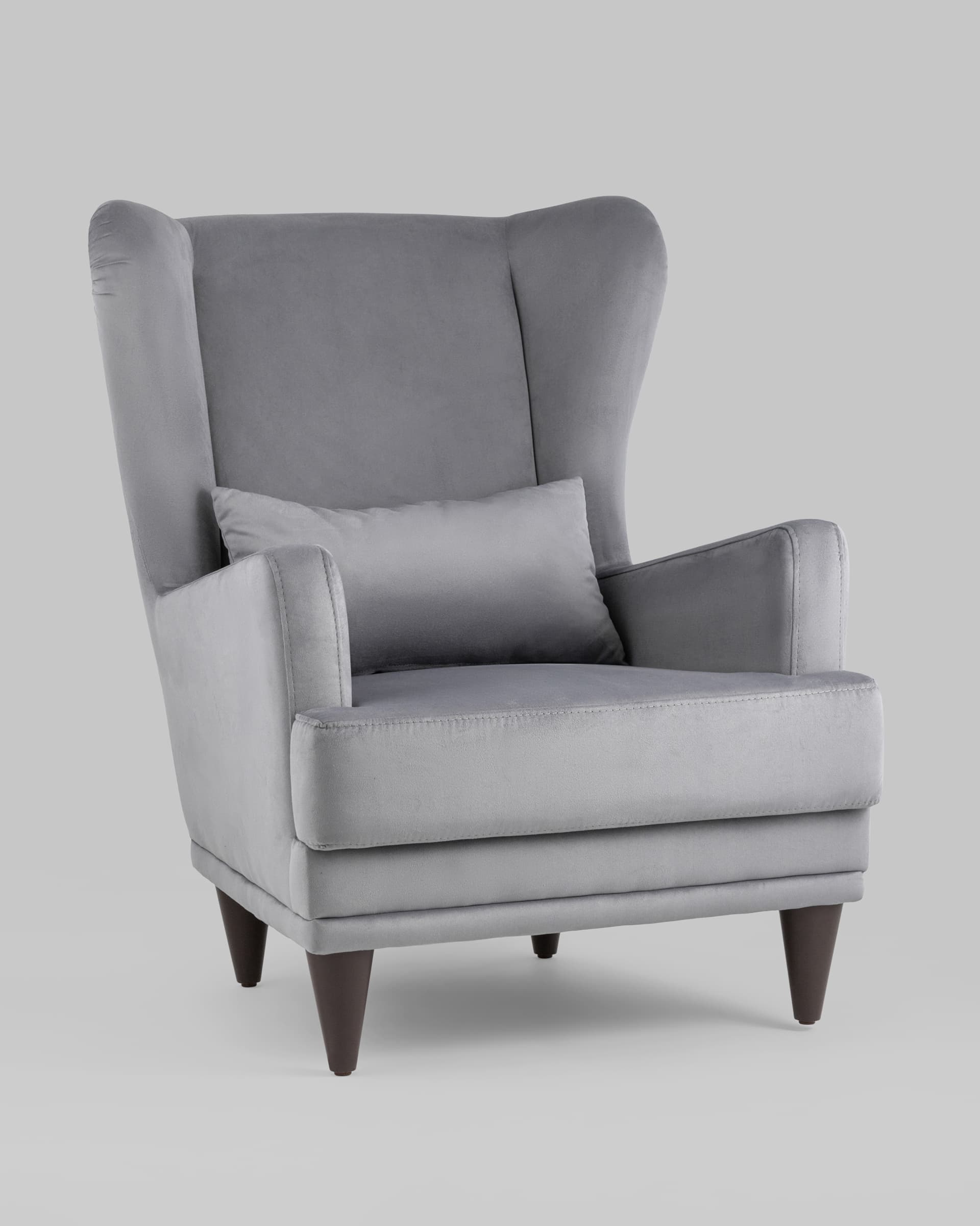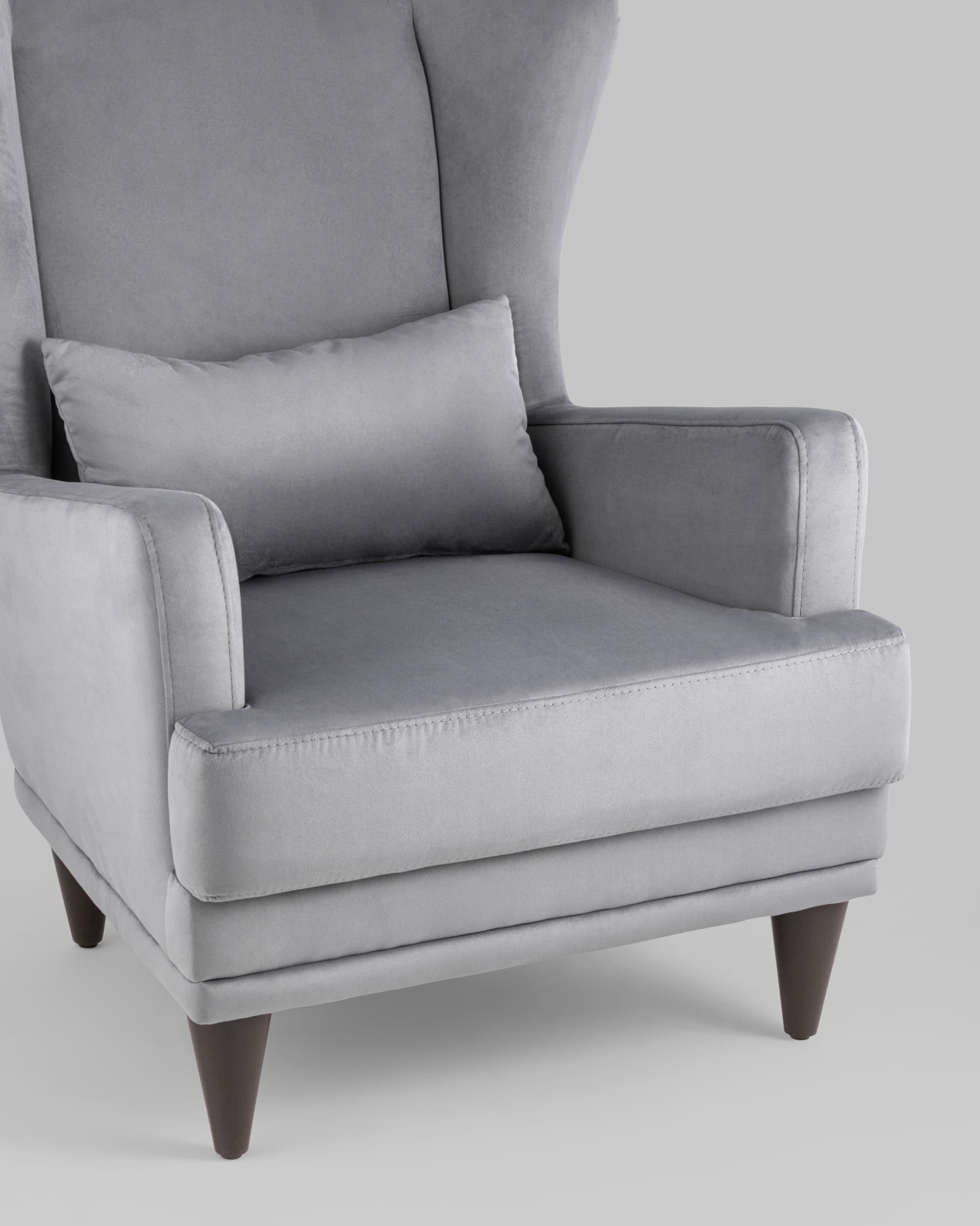 Кресло Скотт велюр серый с высокой спинкой и подушкой для поясницы