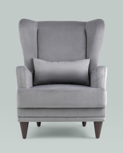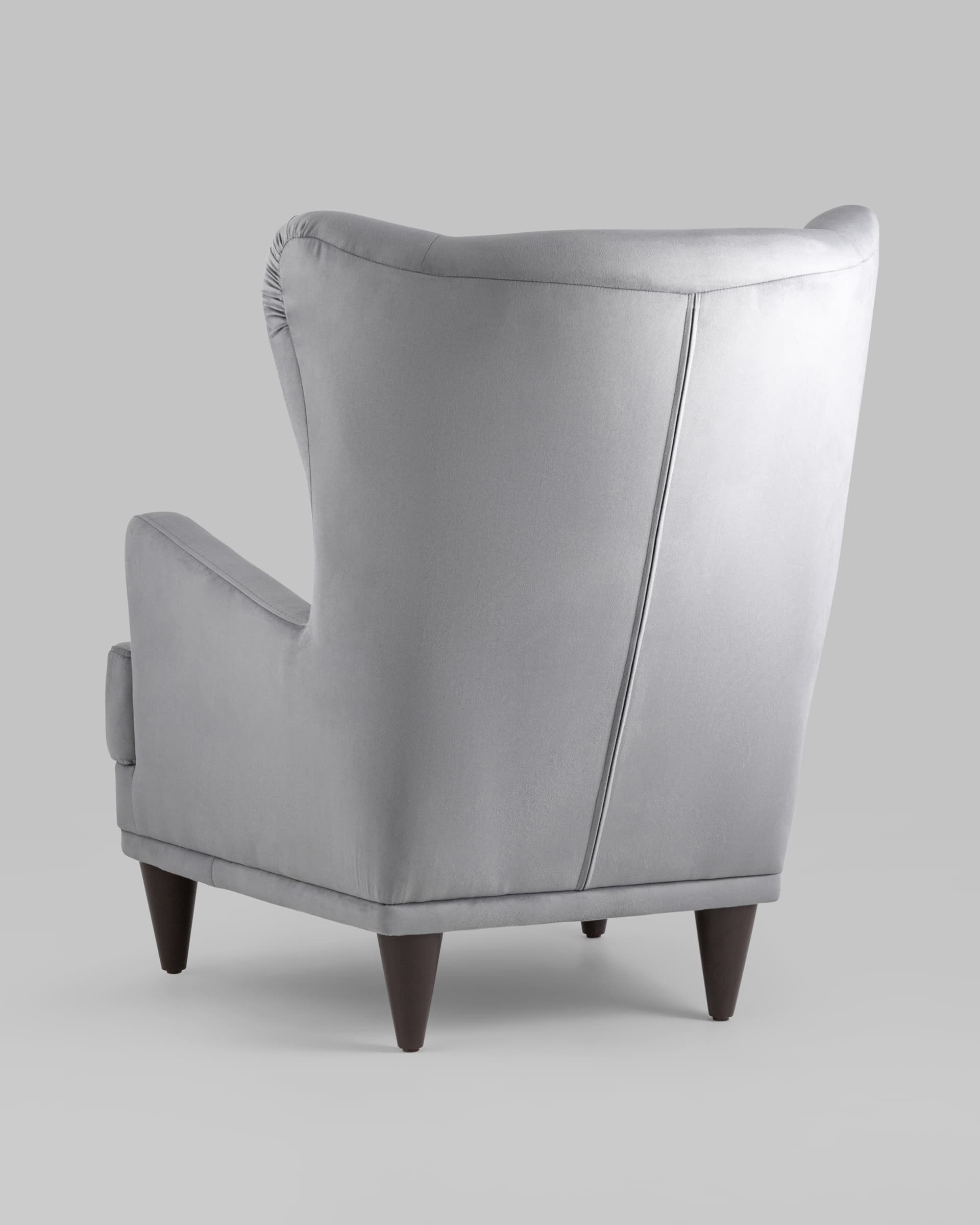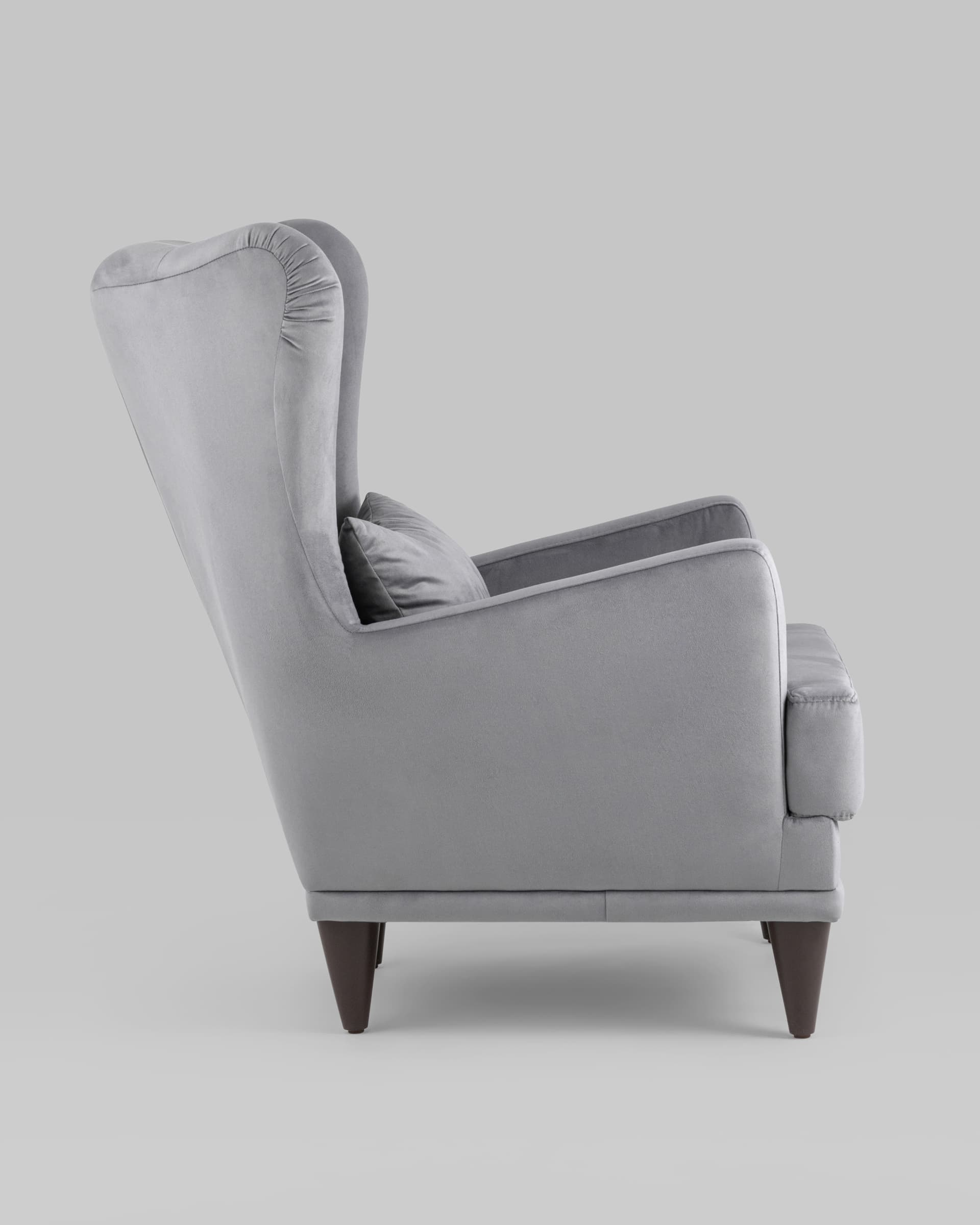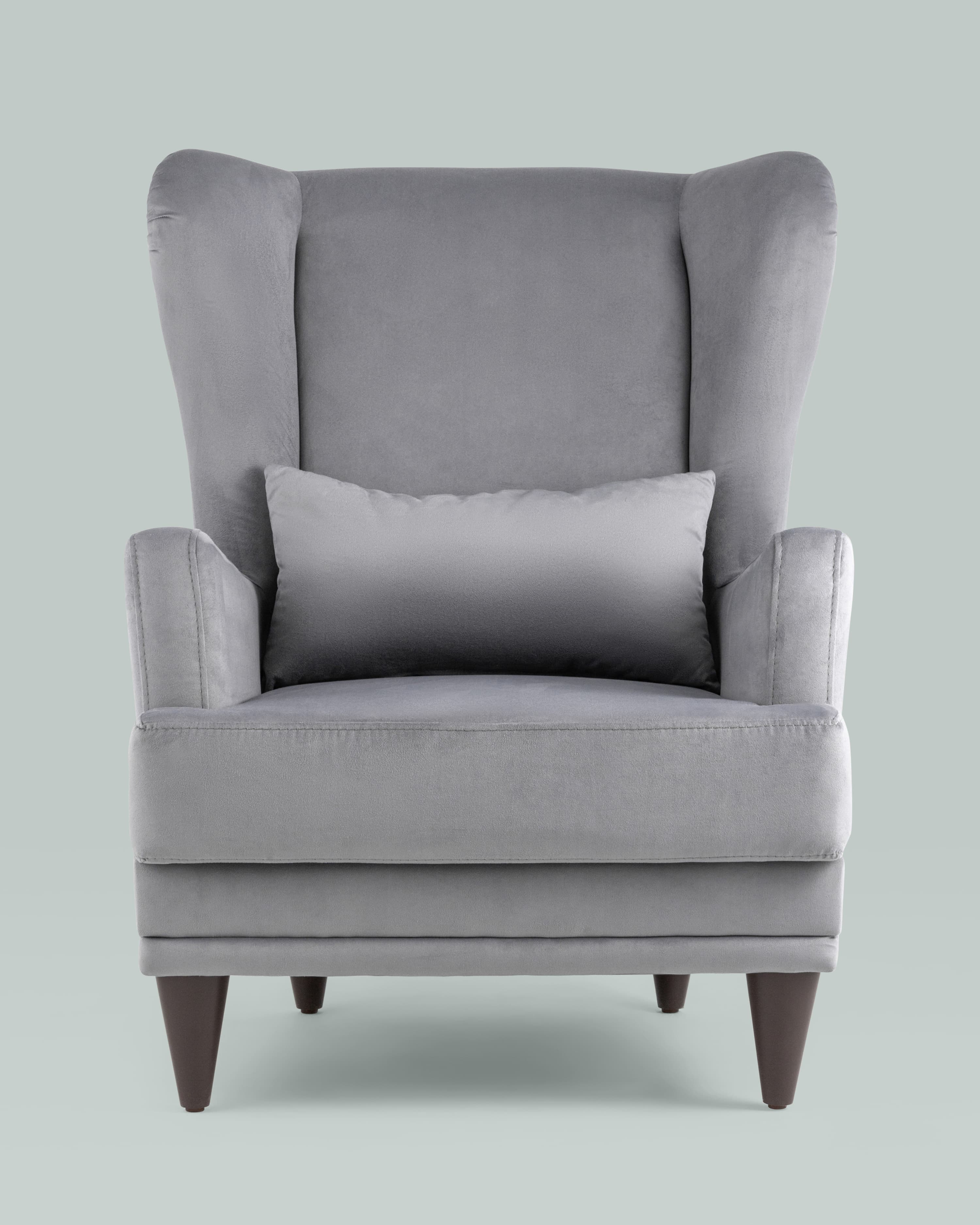 Кресло Скотт велюр серый с высокой спинкой и подушкой для поясницы