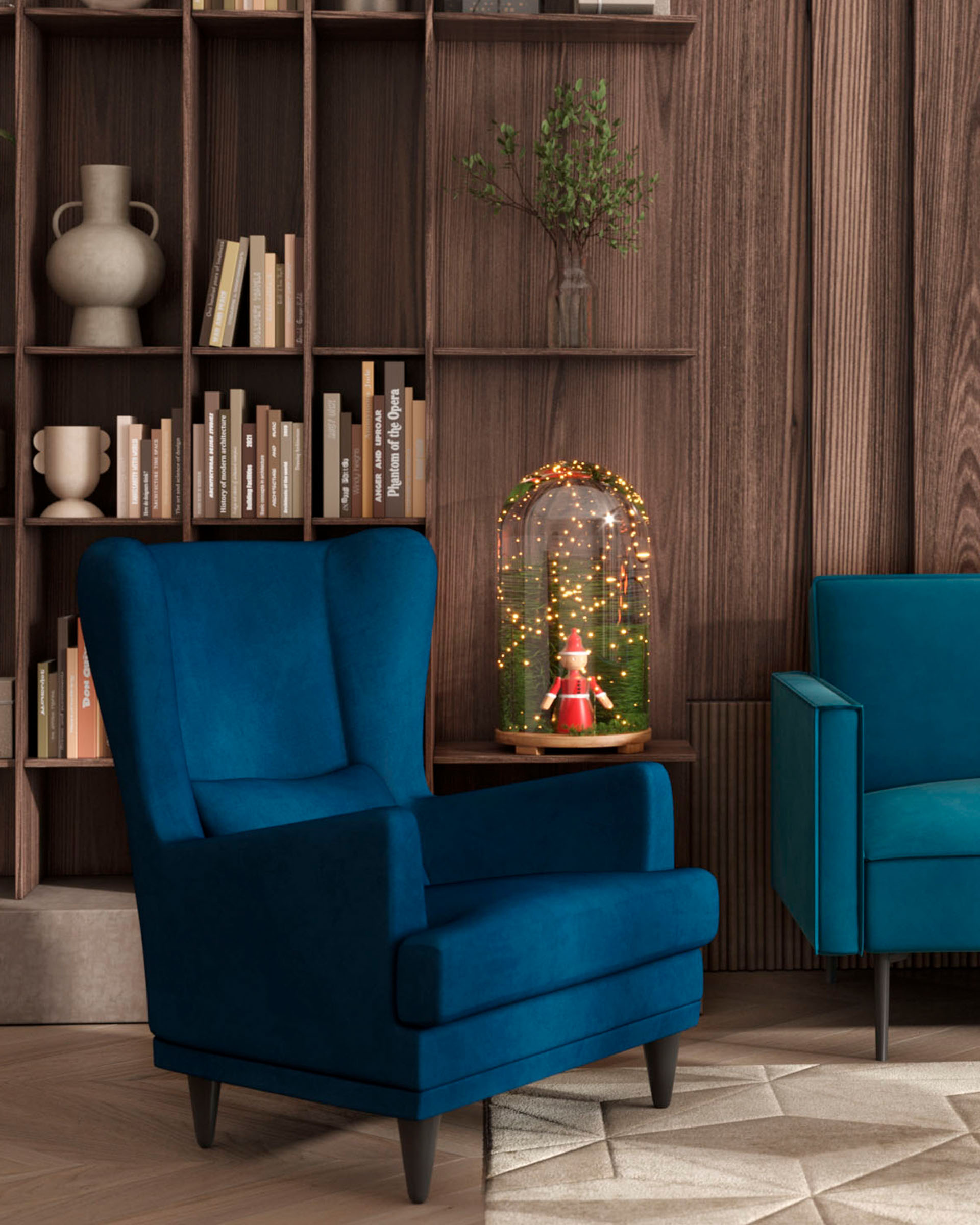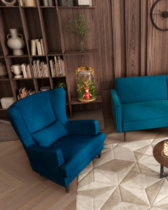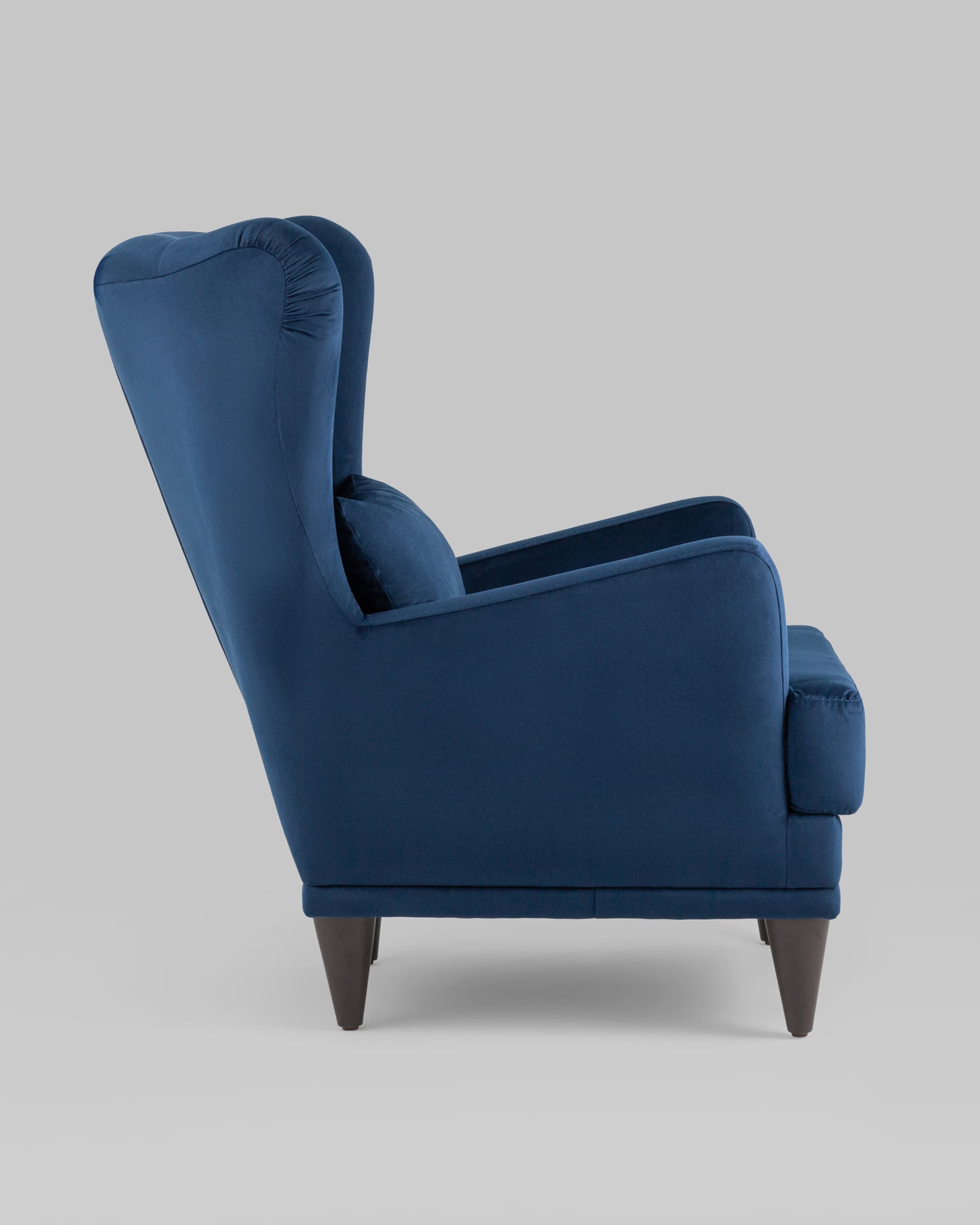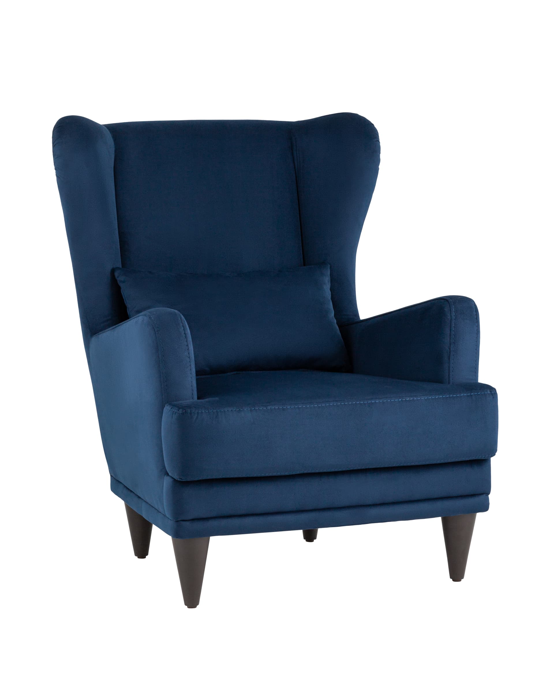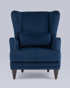 Кресло Скотт велюр темно-синий с высокой спинкой и подушкой для поясницы