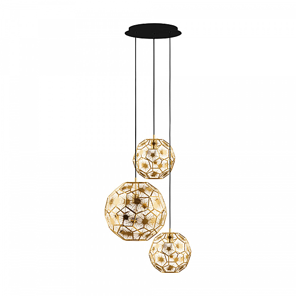 Допускается отличие страны-изготовителя, указанной в характеристиках. Линии производства могут находиться в нескольких государствах. Это не влияет на качество изготовления товара: все заводы данного бренда работают по общим стандартам, а готовые изделия проходят соответствующий контроль.Австрия Коллекция Skoura ЦветЦвет арматуры Черный Цвет Черный Материал арматуры Сталь Цвет плафона латунь ЭлектрикаКоличество ламп (шт) 3 Цоколь E27 Мощность лампы (Вт) 60 Дополнительная информацияВес (Кг) 2.58 Тип подвеса На тросах Количество подвесов Много подвесных элементов -
