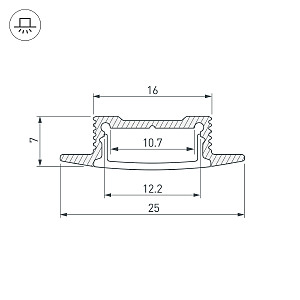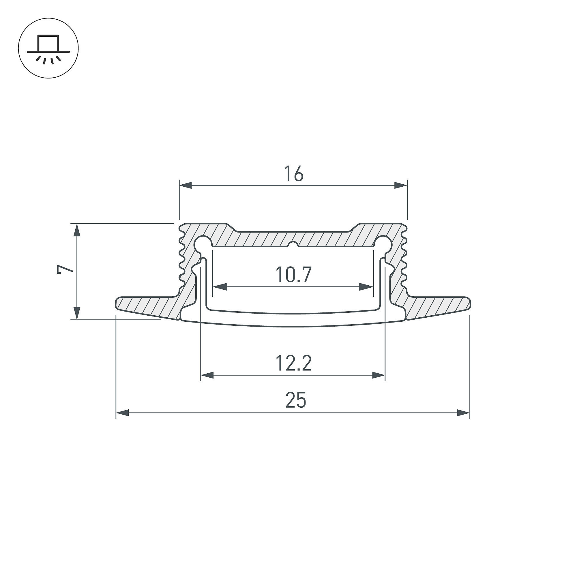 Алюминиевый анодированный профиль для светодиодных лент и линеек. Габаритные размеры (L×W×H): 2000x25x7 мм, паз для установки 16 мм. Ширина площадки для ленты 12 мм. Экраны, заглушки и другие аксессуары приобретаются отдельно. Цена за 1 метр.