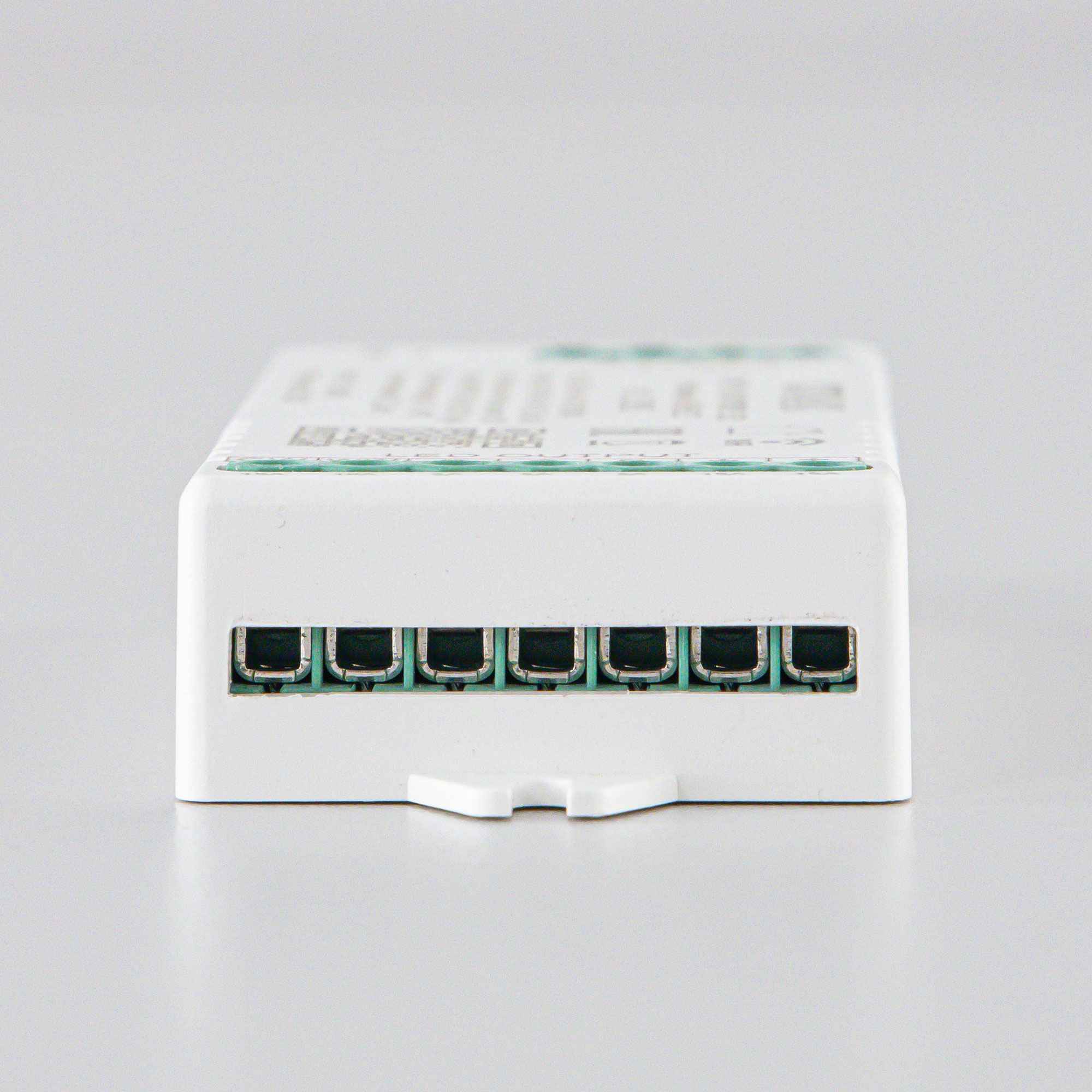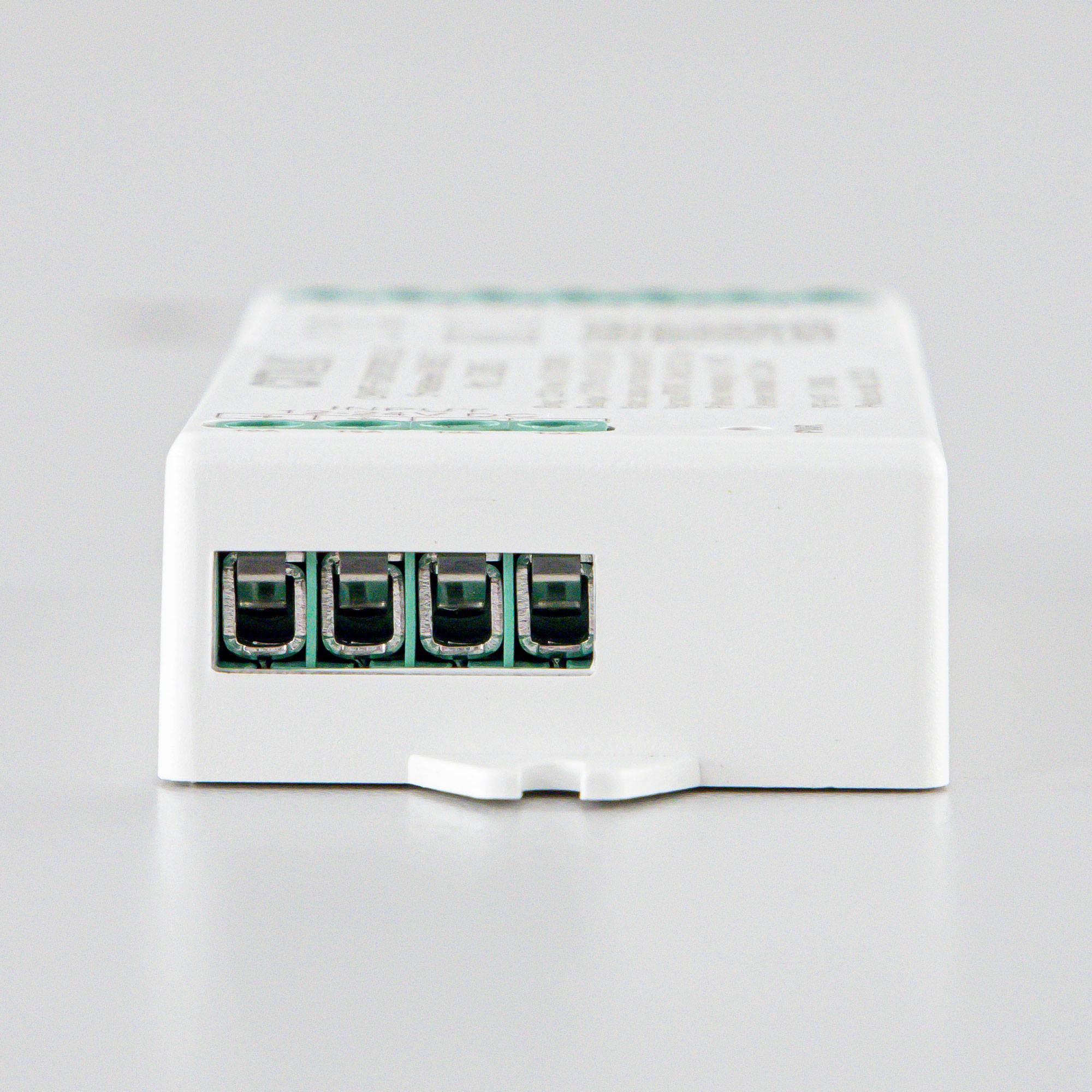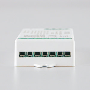 Работает как с 12 вольтовыми, так и с 24-х вольтовыми лентами. Контроллер имеет 5 диммируемых каналов. Два канала по 10А для основного света и три канала по 5А для цветной (RGB) подсветки. Одновременная работа основного света и RGB недоступна. Мощность 2-цветной ленты основного света можно подключить: при использовании ленты на 12В – до 180 Вт; лента на 24 В – до 360Вт.