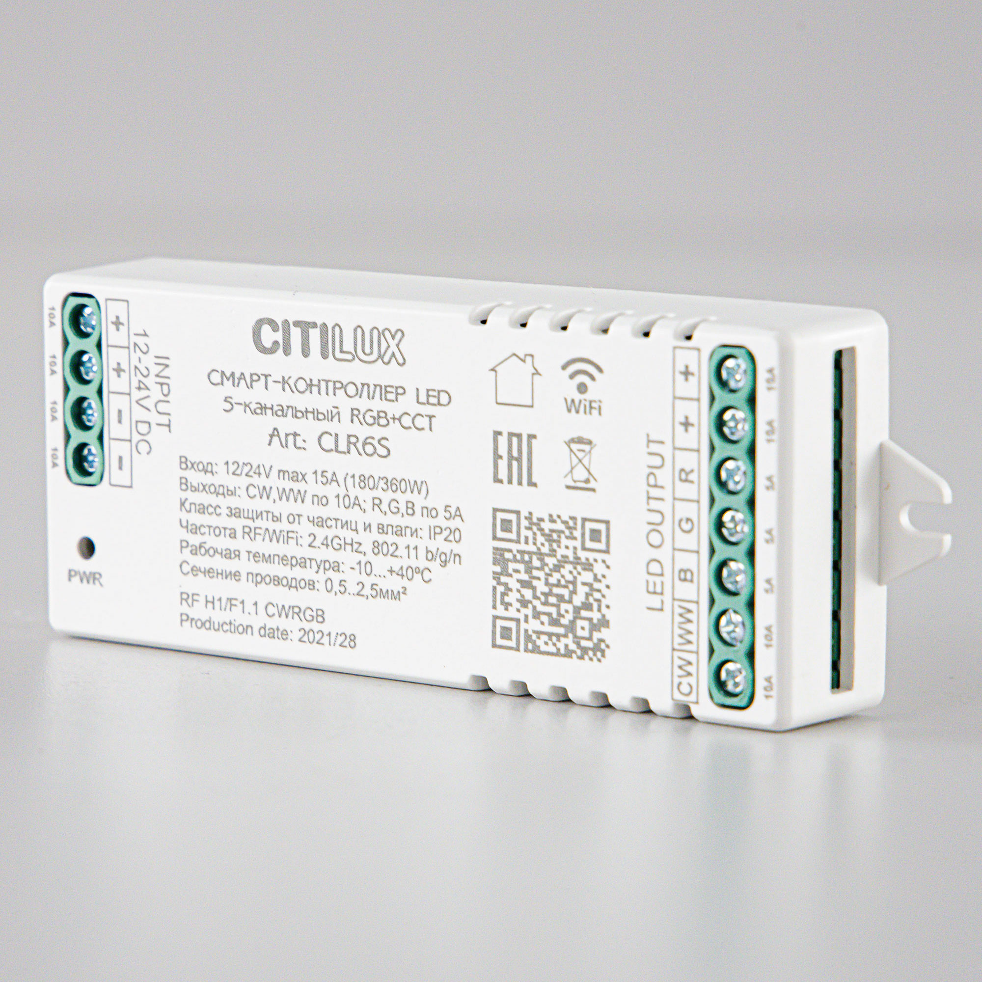 Умный Смарт Контроллер Citilux CLR6S является компонентом экосистемы CITILUX SMART. После подключения и настройки, используя домашние сети WiFi, добавляет возможность легко управлять любой светодиодной лентой со смартфона или планшета, через приложение CITILUX SMART, а также голосовыми помощниками Алиса от Яндекс и Маруся от mail.ru. Доступно управление пультом и обычным настенным выключателем.
