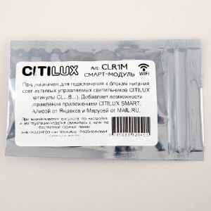 Внешний Смарт Модуль Citilux CLR1M является компонентом экосистемы CITILUX SMART. Предназначен для подключения к блокам питания совместимых управляемых светильников Citilux (артикулы CL…B…). После настройки, используя домашние сети WiFi, добавляет возможности управления всеми функциями светильника со смартфона или планшета, через приложение CITILUX SMART, а также голосовыми помощниками Алиса от Яндекс и Маруся от mail.ru