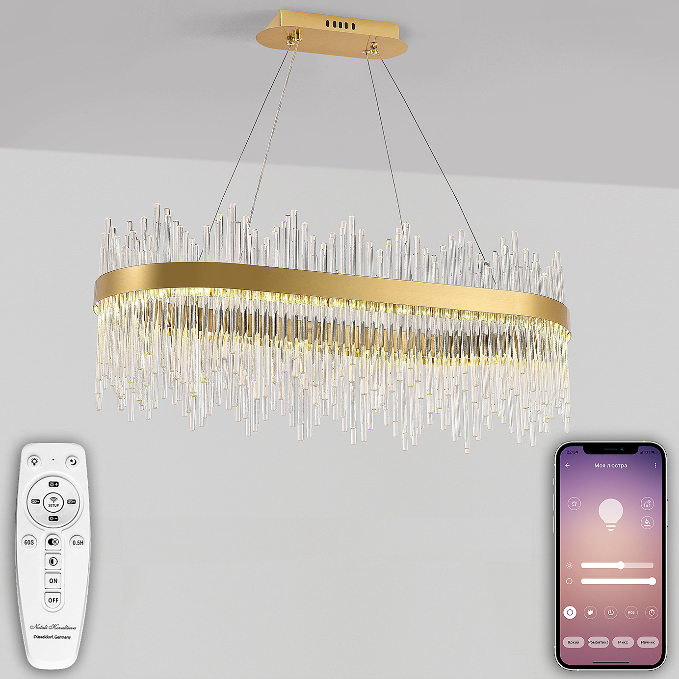 Современный светодиодный светильник нимб украсит любое помещение за счёт инновационного дизайна и большой функциональности. Светильник имеет овальную форму шириной в 70 см. По периметру располагается гранённый хрусталь, который придаёт изысканности и подчеркивает стилистику. Высота люстры регулируется от 25 см до 150 см. Также люстра оснащена дистанционным управлением через пульт ДУ, смартфон, планшет. Люстра имеет тёплый, естественный и холодный свет с регулировкой температуры свечения. Обладает плавной настройкой яркости в диапазоне от 10% до 100%. Имеется режим ночника и таймер отключения. Кроме того, от стандартного выключателя люстра имеет 4 режима свечения. Данные функции делают светильник оптимальным в процессе использования. Общая мощность 120W со световым потоком 7200 lm позволяет осветить до 22 кв.м. Он прост в сборке, установке и экономичен в обслуживании. Светодиоды легко заменимы в случае перегорания. Люстра подойдёт для всех видов потолков. Цветовая температура настраивается от 3000 до 6500 K.Этот светильник идеально подходит для различных помещений, таких как кухня, спальня, гостиная, детская или игровая комната, а также для балкона, коридора. Он легко устанавливается на любой тип потолка, включая натяжной, и имеет скрытый тип монтажа, что делает его универсальным решением для любого интерьера. Люстра станет отличным решением как для низкого потолка, так и для высокого.Люстра выполнена из металла, что обеспечивает ей прочность и долговечность. Производитель предоставляет расширенную гарантию 3 года. Степень пылевлагозащиты IP20 гарантирует, что светильник будет хорошо работать в обычных условиях использования. Срок службы светодиодов составляет 50 000 часов, что является отличным показателем качества. Выбирая эту люстру, вы получаете не только качественное и эффективное освещение, но и возможность создавать уникальную атмосферу в вашем доме.