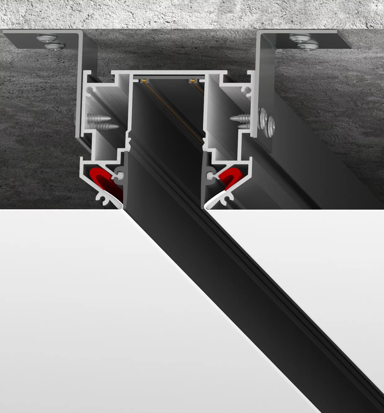 Трек-профиль SMART ONE оснащен системой крепления полотна типа Гарпун. Подходит для установки потолков из ПВХ пленки. Не требует приобретения отдельного трека для установки светильников. Подвод питания, соединительные элементы и прочие аксессуары приобретаются отдельно.