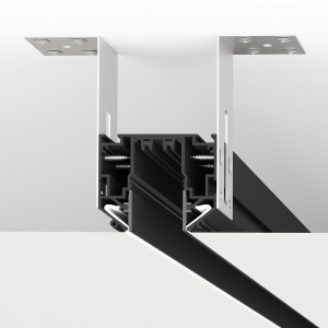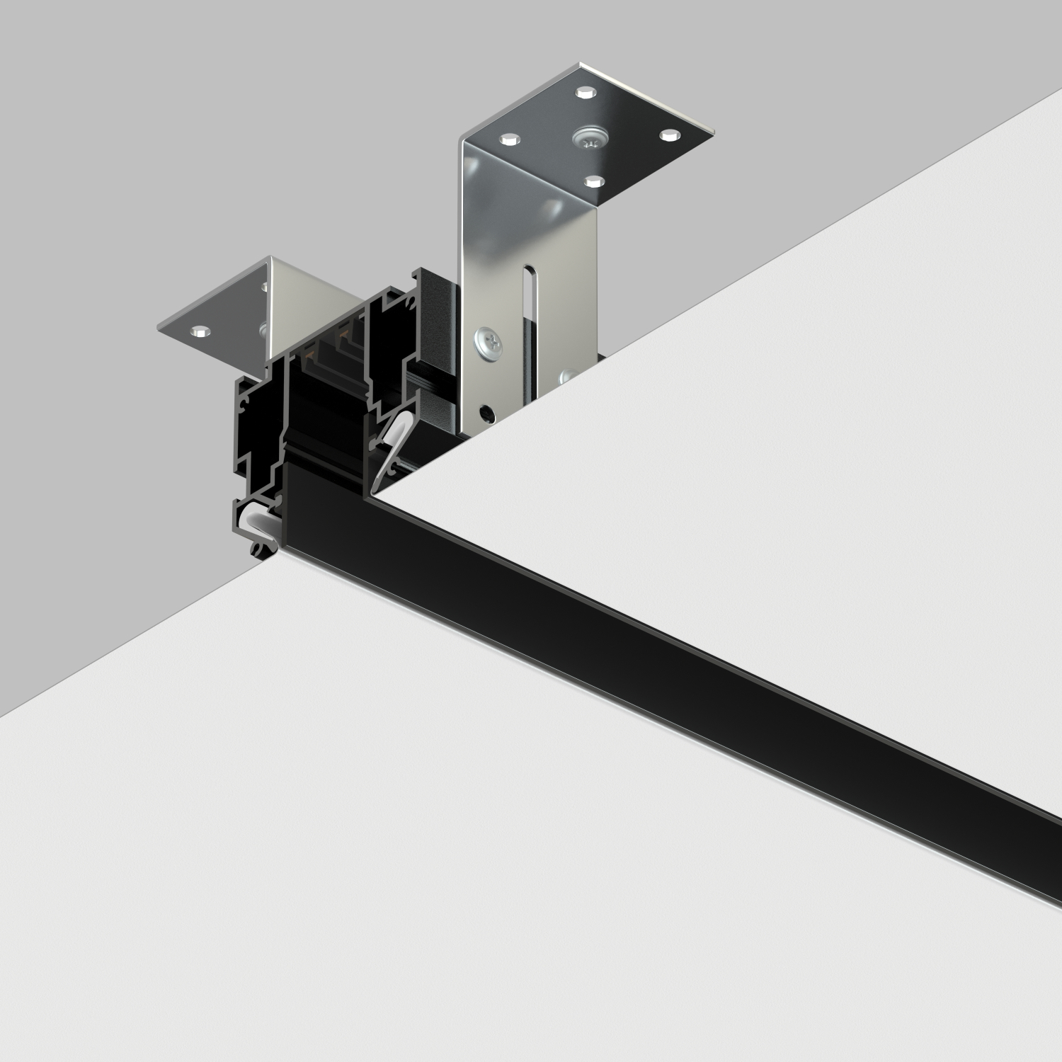 TR3045-AL – Комплект монтажных уголков для монтажа профиля к черновому потолку. Позволяет легко регулировать высоту установки профиля. В комплекте: 2 уголка, крепеж.