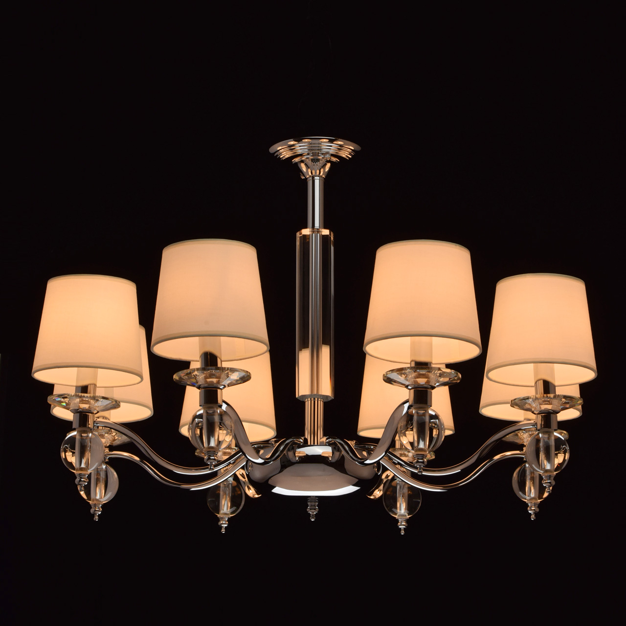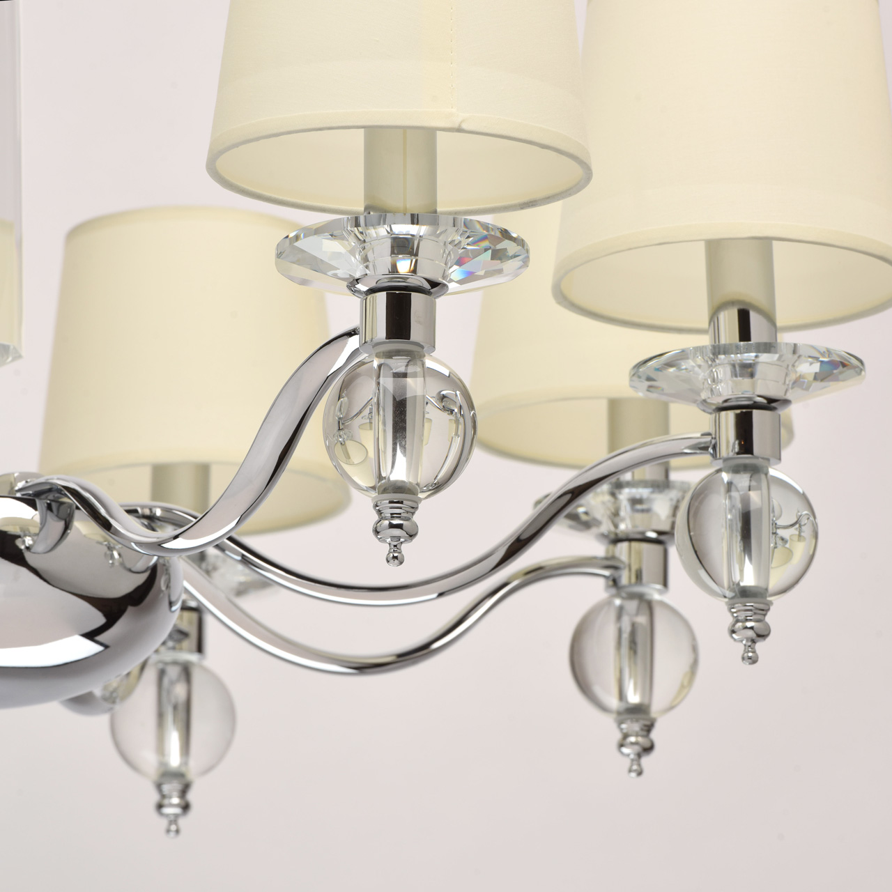 Элегантный светильник подойдет как для классических, так и для современных интерьеров.Большой диаметр люстры обеспечит мягкий, рассеянный светДекоративные элементы из массива хрусталя добавляют парадности модели и являются бесспорным украшением корпуса светильника.Абажуры с удобным креплением легко снимаются, светильник может использоваться с открытыми источниками света в виде классических свеч. Люстра снабжена универсальным креплением к потолку как на планку, так и на крюк