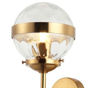 Светильник настенный из коллекции Sogno выполнен из металла, гальванизированного в цвет бронзы, и декорирован плафоном из прозрачного стекла, имитирующего вулканическое стекло. По центру плафон отделан металлическим кантом, гальванизированным в цвет арматуры. Премиальное качество и неповторимыи? дизаи?н светильников идеально подои?дут в современные и дизайнерские интерьеры.