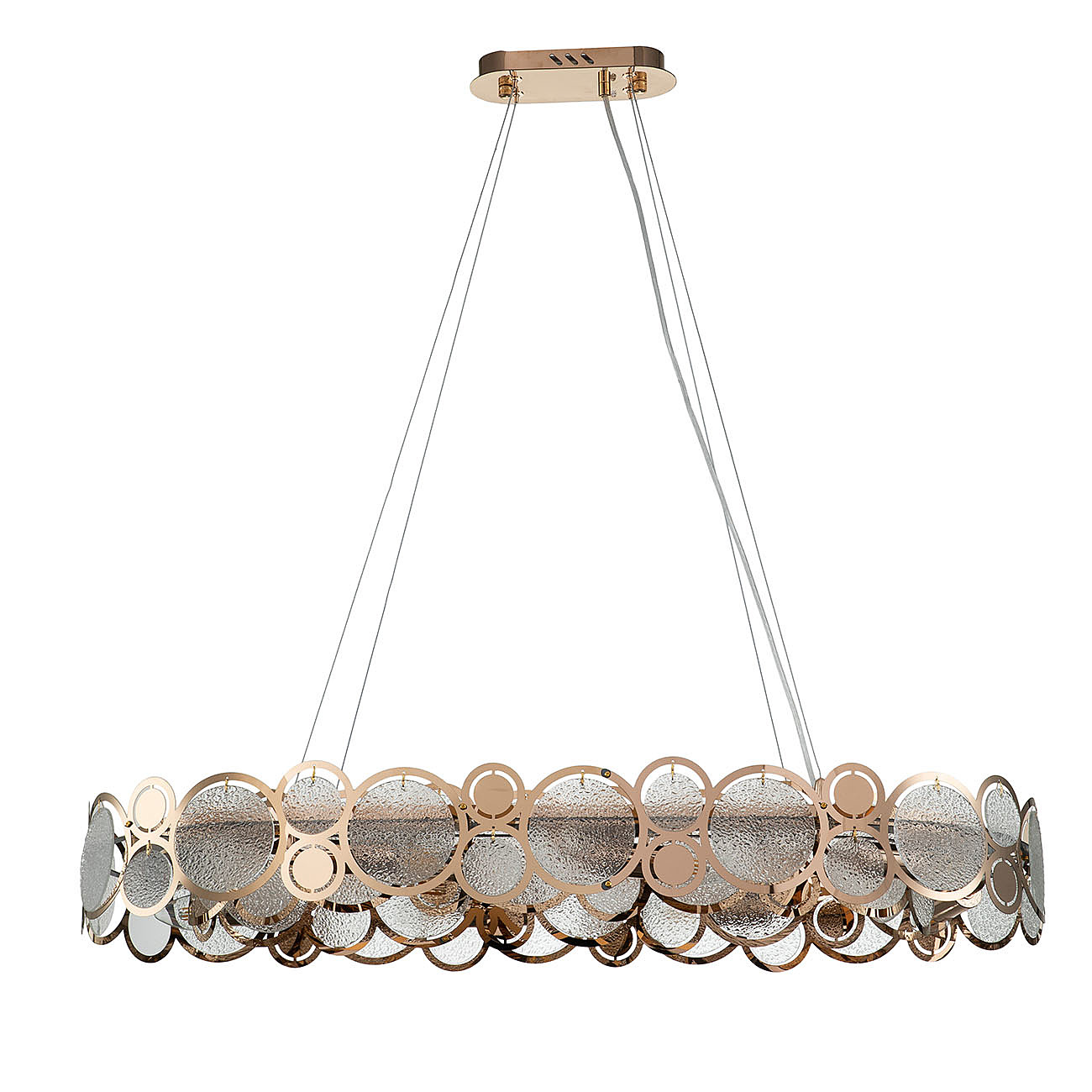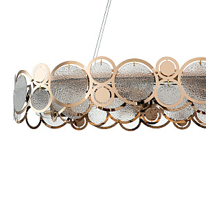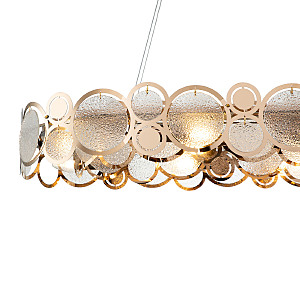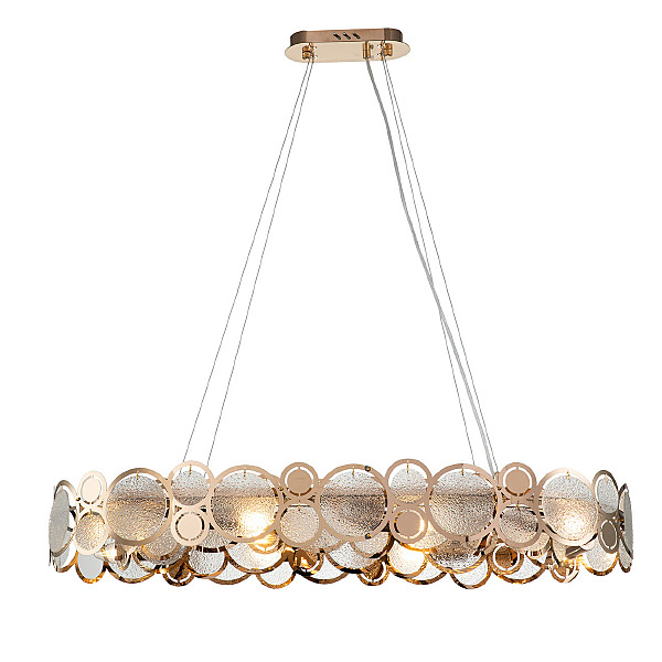 Оригинальная Серия SOLE перенесет нас в мир творческих фантазий на тему главных источников света на земле.Круглые декоративные орнаменты различных фактур, размеров и цветов символизируют солнце и луну, как самые древние и почитаемые символы всех времен и народов. Столь яркая и харизматичная коллекция рождена, чтобы наполнить ваш дом живительным теплом и нескончаемой энергией. Размер 830*350*145/1145 МощностьE14 60W х 10 Цвет ЗОЛОТОЙ/ПРОЗРАЧНЫЙ С ЭФФЕКТОМ ДОЖДЯ Материал МЕТАЛЛ/СТЕКЛО