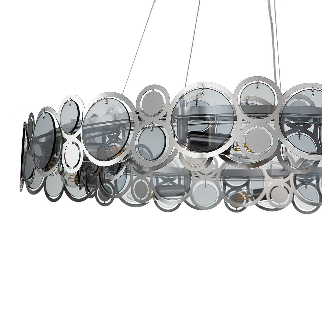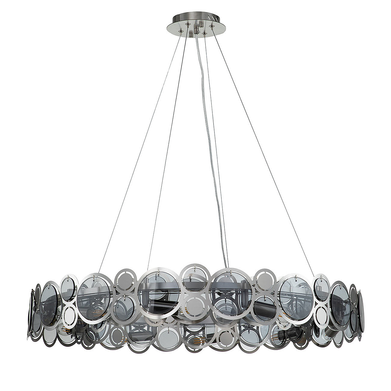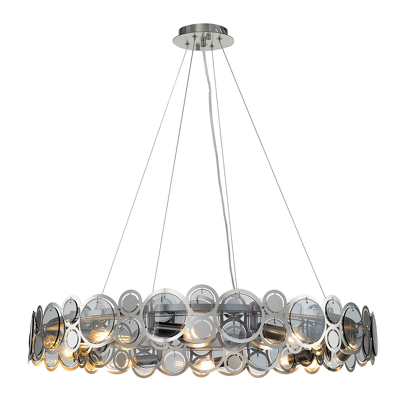 Оригинальная Серия SOLE перенесет нас в мир творческих фантазий на тему главных источников света на земле.Круглые декоративные орнаменты различных фактур, размеров и цветов символизируют солнце и луну, как самые древние и почитаемые символы всех времен и народов. Столь яркая и харизматичная коллекция рождена, чтобы наполнить ваш дом живительным теплом и нескончаемой энергией. Размер 800*800*145/1145 МощностьE14 60W х 10 Цвет НИКЕЛЬ/ДЫМЧАТЫЙ Материал МЕТАЛЛ/СТЕКЛО