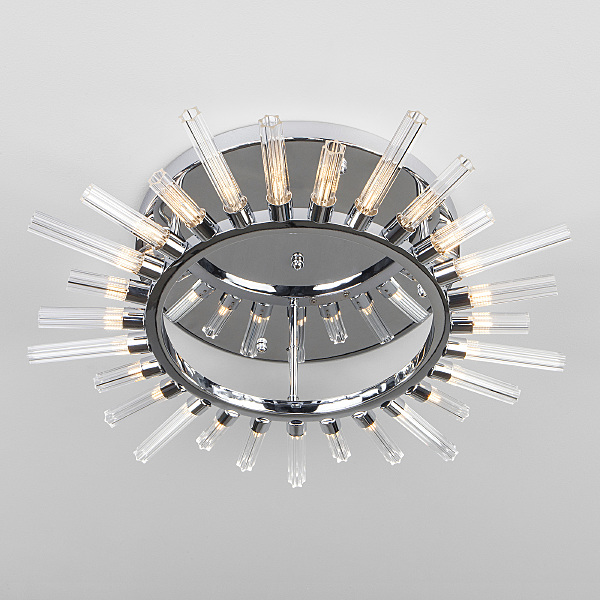 Допускается отличие страны-изготовителя, указанной в характеристиках. Линии производства могут находиться в нескольких государствах. Это не влияет на качество изготовления товара: все заводы данного бренда работают по общим стандартам, а готовые изделия проходят соответствующий контроль.Италия Коллекция Sole ЦветЦвет арматуры Хром Цвет Хром Материал арматуры Металл Цвет плафона прозрачный Материал плафона Стекло РазмерыВысота (мм) 150 Длина (мм) 650 Ширина (мм) 650 ЭлектрикаКоличество ламп (шт) 27 Цоколь G4 Лампочки в комплекте Лампы в комплекте Мощность лампы (Вт) 3 Напряжение (В) 220 Площадь освещения 12 Дополнительная информацияСпособ крепления Планка Степень защиты (IP) IP20 -