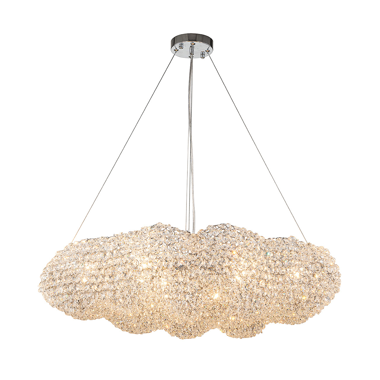 Серия SONNA взмывает в недостижимые выси обволакивающего света. Изящно подвешенные, светильники этой серии полностью покрыты кристаллами хрусталя, словно тысячи маленьких звездочек рассыпались на воздушных облаках. Эти светильники схожи с грезами, которые окутывают нас в безмятежном сне, когда у реальности и фантазии размываются границы. Сияющие нити света пробуждают причудливые мечты и приглашают разум побродить среди пушистых облаков грез. Размер 460*800*1090 Мощность E14 11xMAX 40W Цвет ХРОМ/ПРОЗРАЧНЫЙ Материал МЕТАЛЛ/ХРУСТАЛЬ