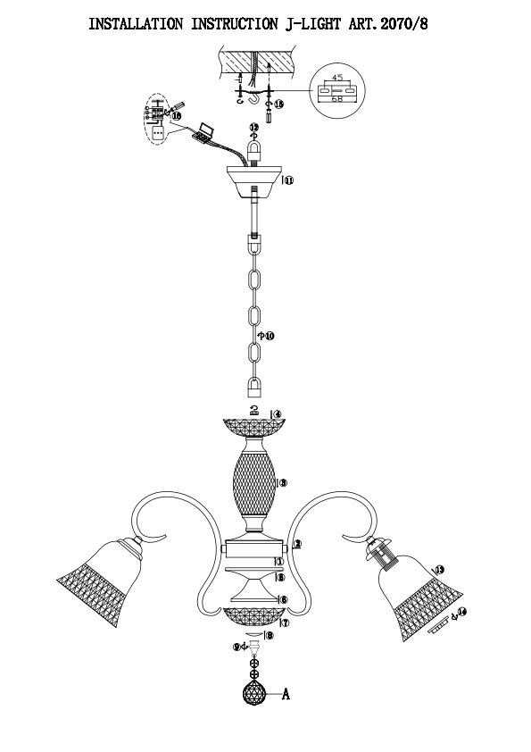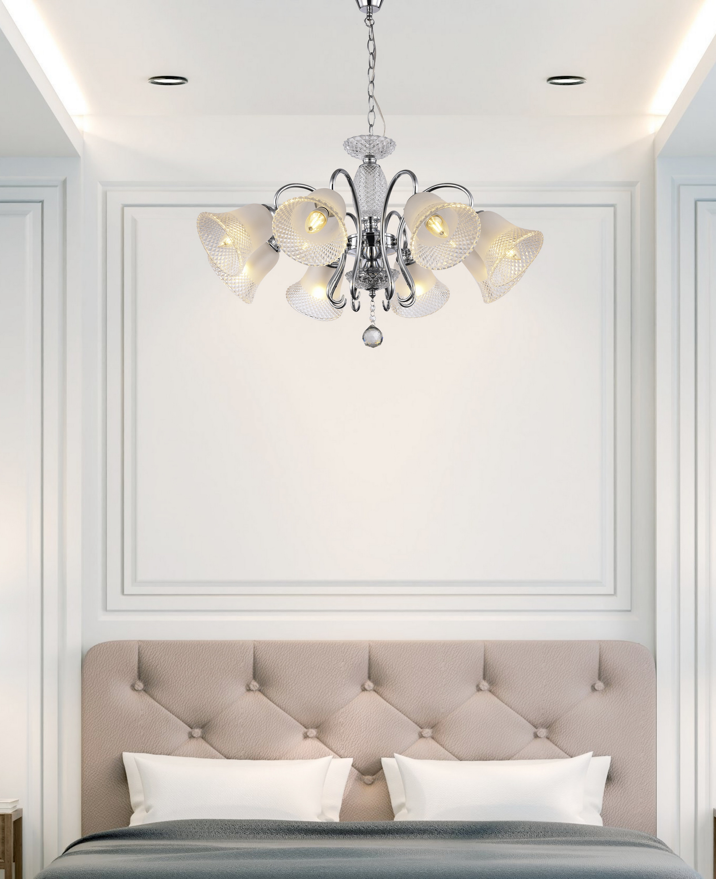 Допускается отличие страны-изготовителя, указанной в характеристиках. Линии производства могут находиться в нескольких государствах. Это не влияет на качество изготовления товара: все заводы данного бренда работают по общим стандартам, а готовые изделия проходят соответствующий контроль.Китай Коллекция Sonya ЦветЦвет арматуры Хром Цвет Хром Материал арматуры Металл, Стекло, Хрусталь Цвет плафона Белый Материал плафона Стекло РазмерыВысота (мм) 700 Длина (мм) 645 Высота минимальная (мм) 355 Ширина (мм) 645 ЭлектрикаКоличество ламп (шт) 8 Цоколь E14 Мощность лампы (Вт) 40 Напряжение (В) 220 Площадь освещения 19 Дополнительная информацияСпособ крепления Крюк Степень защиты (IP) IP20 Вес (Кг) 3 Тип подвеса На цепи -
