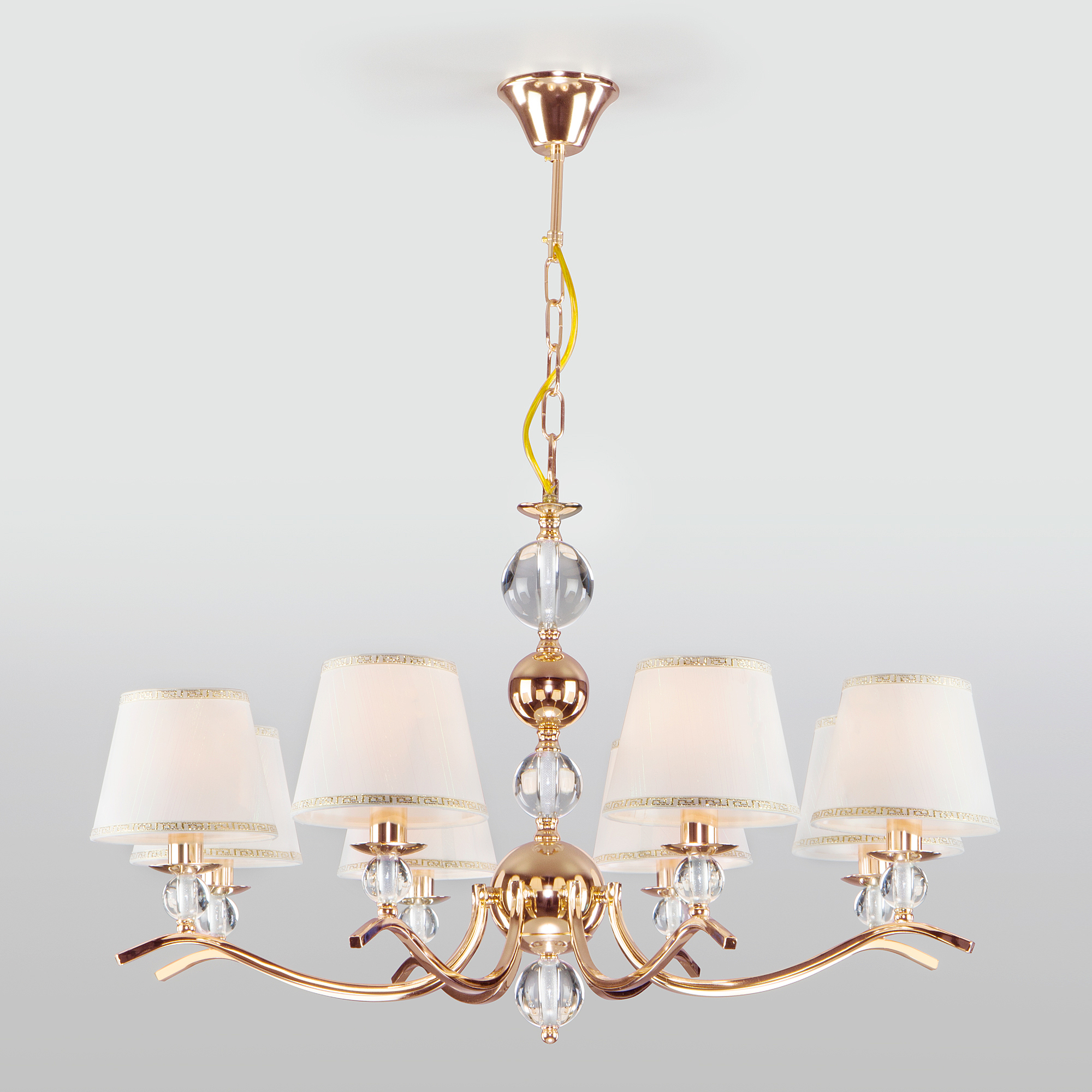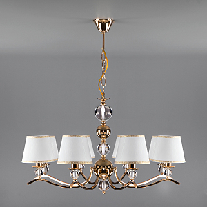 Допускается отличие страны-изготовителя, указанной в характеристиках. Линии производства могут находиться в нескольких государствах. Это не влияет на качество изготовления товара: все заводы данного бренда работают по общим стандартам, а готовые изделия проходят соответствующий контроль.Китай Коллекция Sortino ЦветЦвет арматуры Золото Цвет Золото Материал арматуры Металл Цвет декора прозрачный Цвет плафона Белый Материал декора Хрусталь Материал плафона Ткань РазмерыВысота (мм) 970 Длина (мм) 780 Высота минимальная (мм) 470 Ширина (мм) 780 ЭлектрикаКоличество ламп (шт) 8 Цоколь E14 Мощность лампы (Вт) 40 Напряжение (В) 220 Площадь освещения 24 Дополнительная информацияСпособ крепления Крюк Степень защиты (IP) IP20 Тип подвеса На цепи -