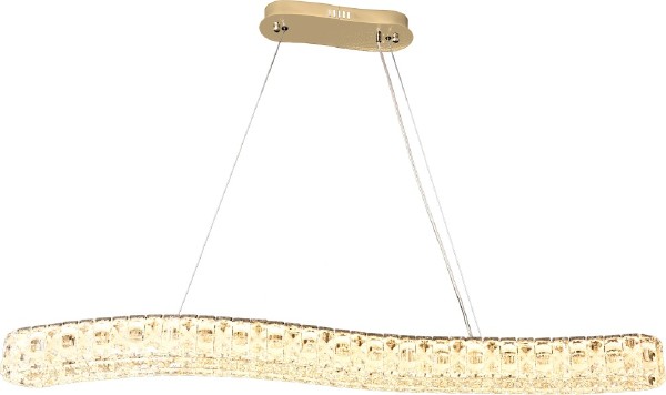 Люстра подвесная вытянутой формы коллекции Spayd выполнена из металла золотого цвета и декорирована текстурным хрусталем высшей категории. Модель комплектуется пультом дистанционного управления 2,4G и драйвером высокого качества европейского стандарта T?V. Пульт дистанционного управления обеспечивает переключение трех режимов световой температуры и диммирование. Современная форма и высокое качество светильников идеально подои?дут как в классические, так и современные дизайнерские интерьеры. Из данной коллекции светильников можно сделать индивидуальный заказ любого цвета и размера.