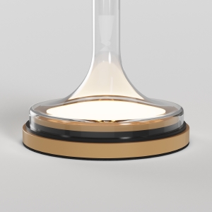 Материал арматуры и плафонов - литое стекло, цвет - градиентный черный, золотой и белый. Фактура поверхностей гладкая. Источник света: LED. Цветовая температура светильника 3000К, угол рассеивания света 120градусов. На проводе расположен тач-сенсор, при длительном нажатии световой поток меняет свою мощность (диммируется). Отражаясь от стекла, свет стремится вниз, создавая визуальный эффект парения плафона в воздухе.