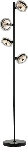 Торшер эксклюзивной коллекции Sportu выполнен из металла и сплава алюминия черного цвета. Прозрачные плафоны имеют двойные стекла и текстурный рисунок. Особенностью данной коллекции является возможность поворачивать плафоны в зависимости от ваших предпочтений. Светильник комплектуется драйвером высокого качества европейского стандарта T?V. Данная коллекция идеально сочетается с коллекцией PORTU. Премиальное качество и неповторимый дизайн светильника идеально подойдут как в классические, так и современные интерьеры.