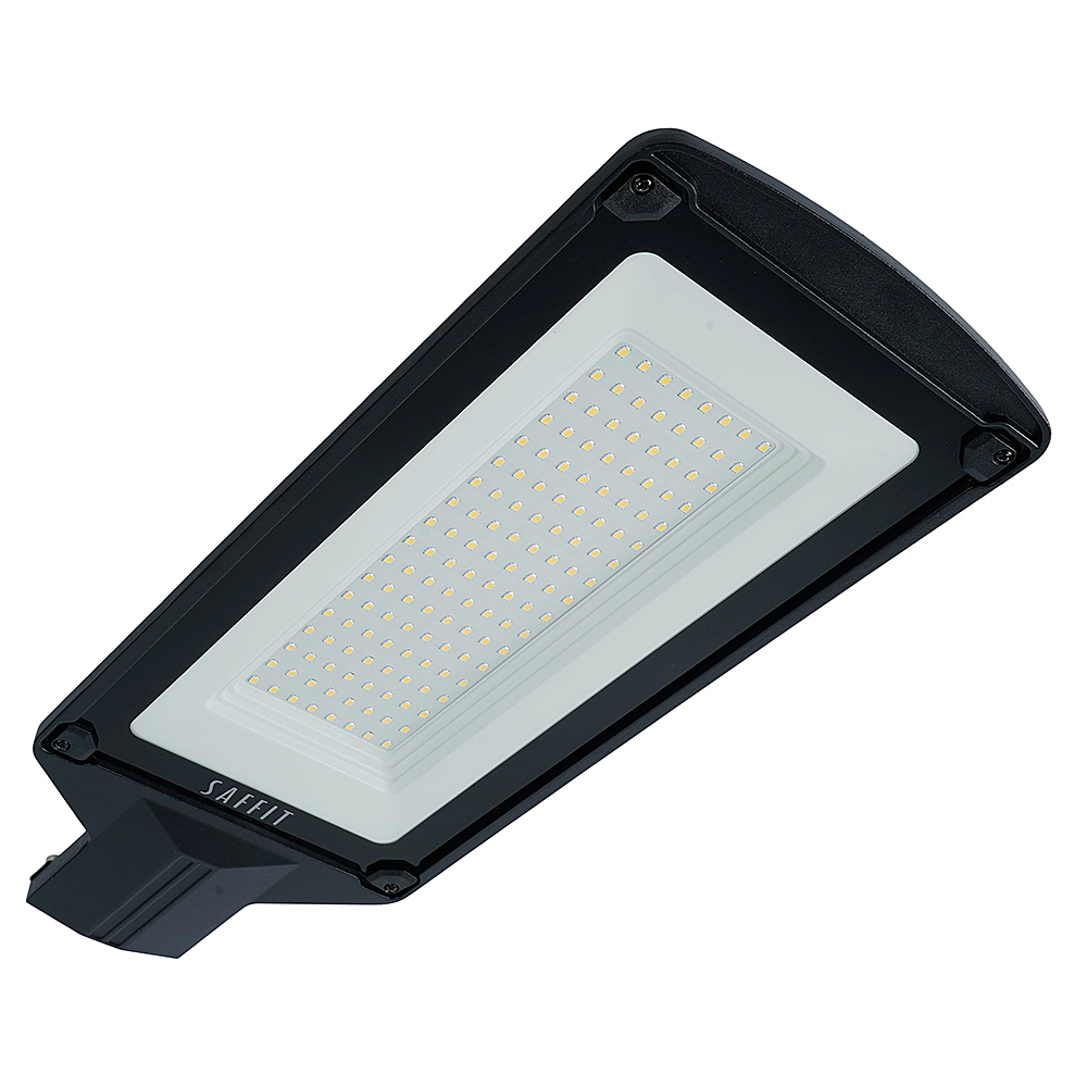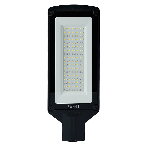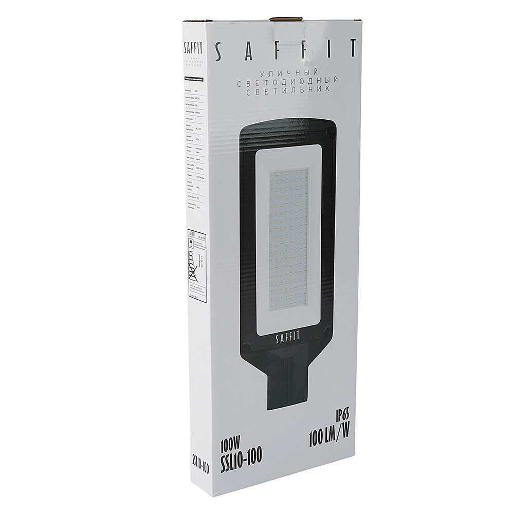 Уличный светильник консольный светодиодный, на столб (ДКУ) SAFFIT SSL10-100, 100W, 5000К (холодный белый), 230V/50Гц, 10000Lm, IP65, угол рассеивания 120градусов, 144LED*SMD2835 , класс защиты 1, раб.t -40градусов - +45градусов, цвет чёрный, корпус алюминий, стекло, 45*188*438мм,