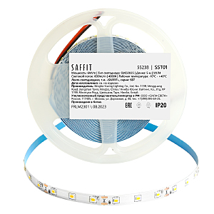 Лента светодиодная 12V SAFFIT SST01 , 60*SMD2835, 6W/m, IP20, 4000К (нейтральный белый), Кратность резки мм 50мм, 5000*8 *1,22мм