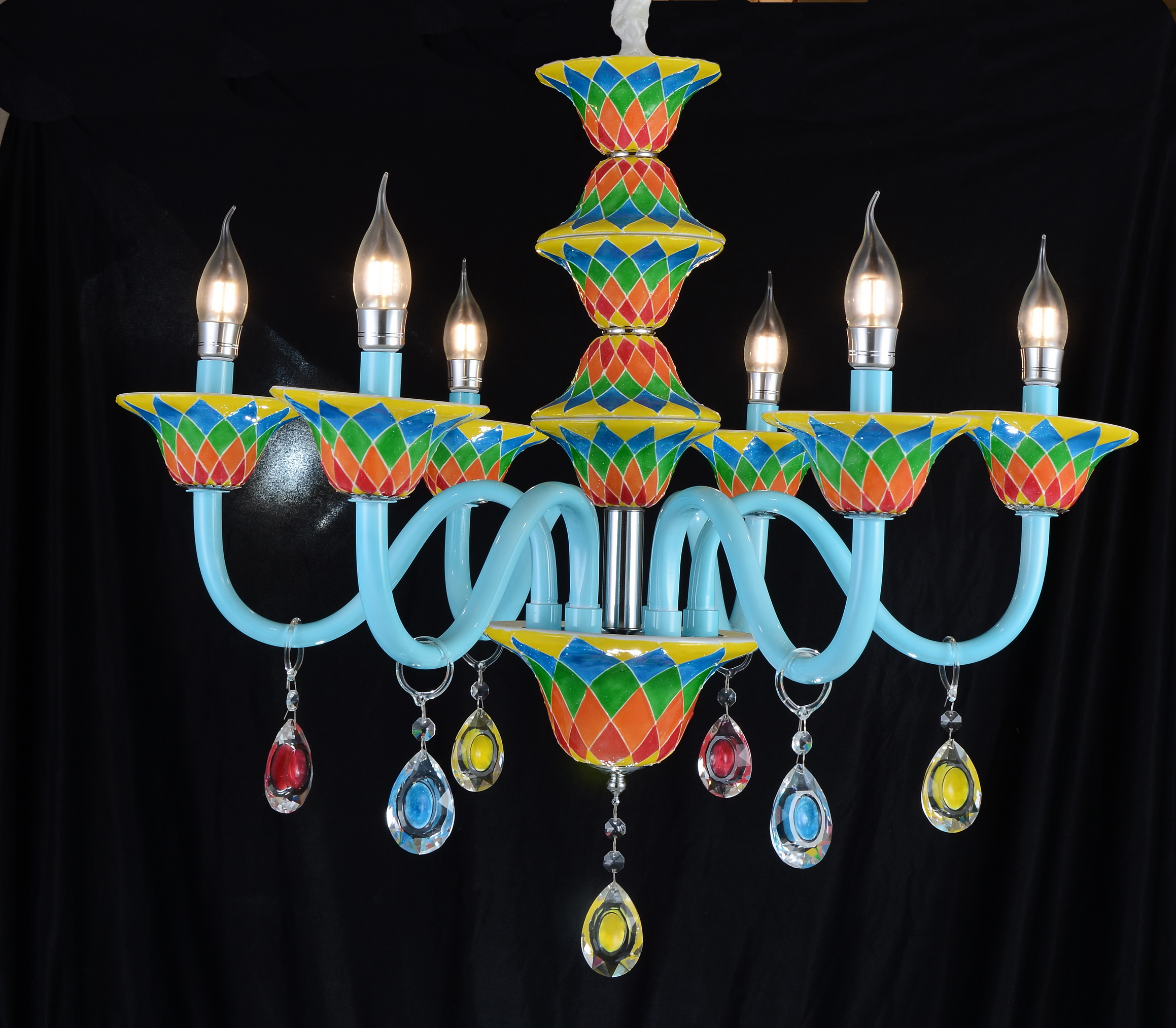Допускается отличие страны-изготовителя, указанной в характеристиках. Линии производства могут находиться в нескольких государствах. Это не влияет на качество изготовления товара: все заводы данного бренда работают по общим стандартам, а готовые изделия проходят соответствующий контроль.Италия Коллекция SL674 ЦветЦвет арматуры Разноцветный Цвет Разноцветные Материал арматуры Металл, Стекло Цвет плафона разноцветный Материал плафона Стекло РазмерыВысота (мм) 600-1200 Диаметр (мм) 700 Ширина (мм) 700 ЭлектрикаКоличество ламп (шт) 6 Цоколь E14 Лампочки в комплекте Нет в комплекте Мощность лампы (Вт) 40W Напряжение (В) 220 Дополнительная информацияТип подвеса На цепи -
