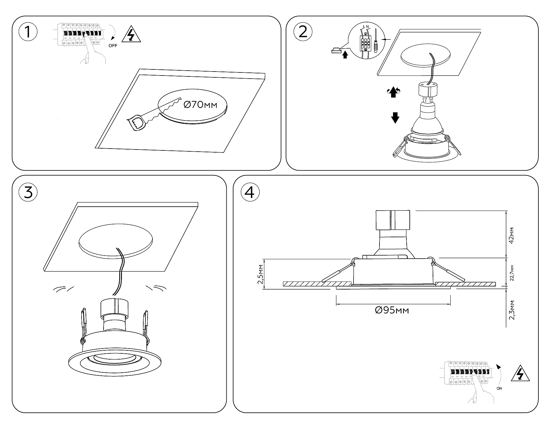 | Диаметр врезного отверстия (мм) | 70 |