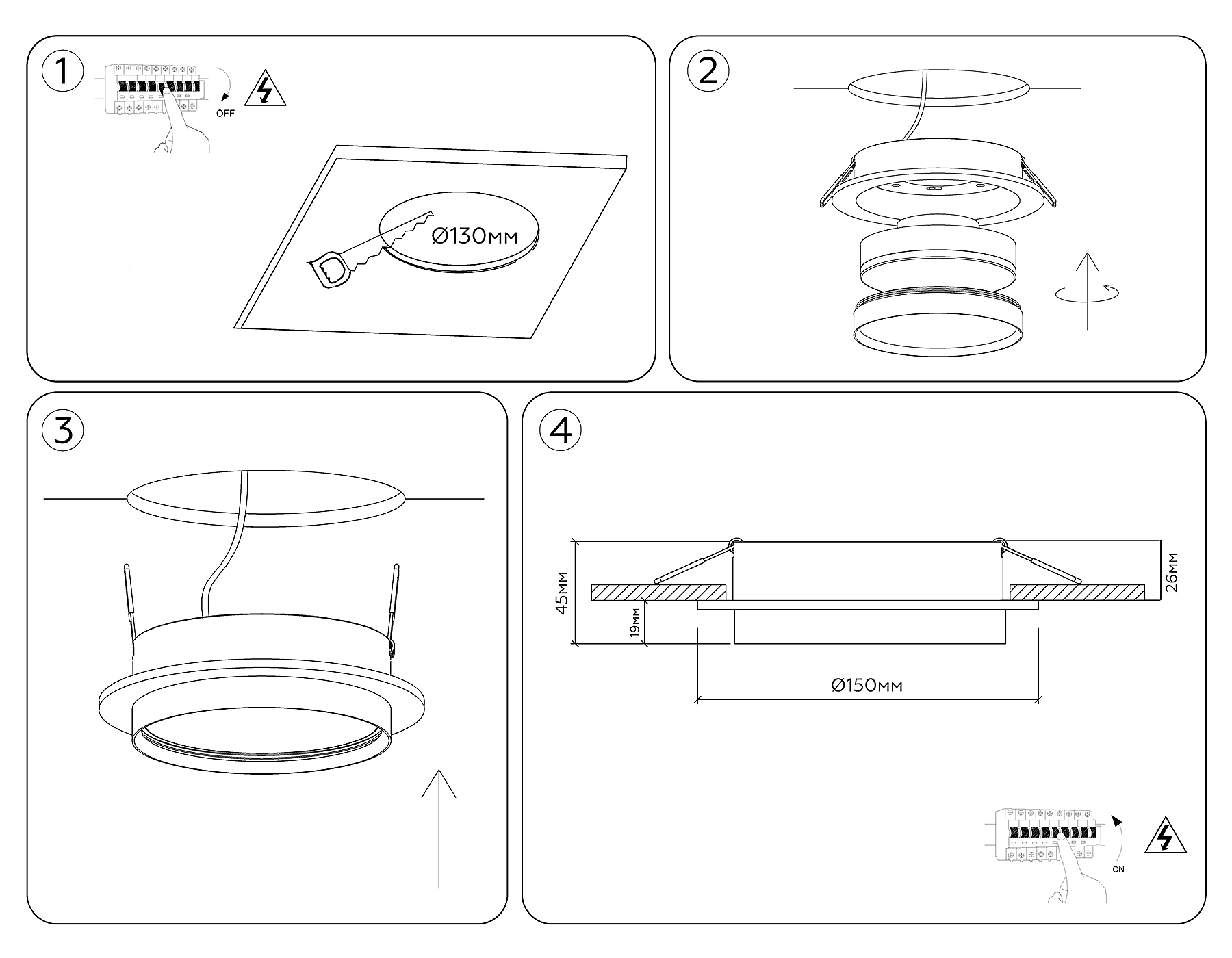 | Диаметр врезного отверстия (мм) | 130 |