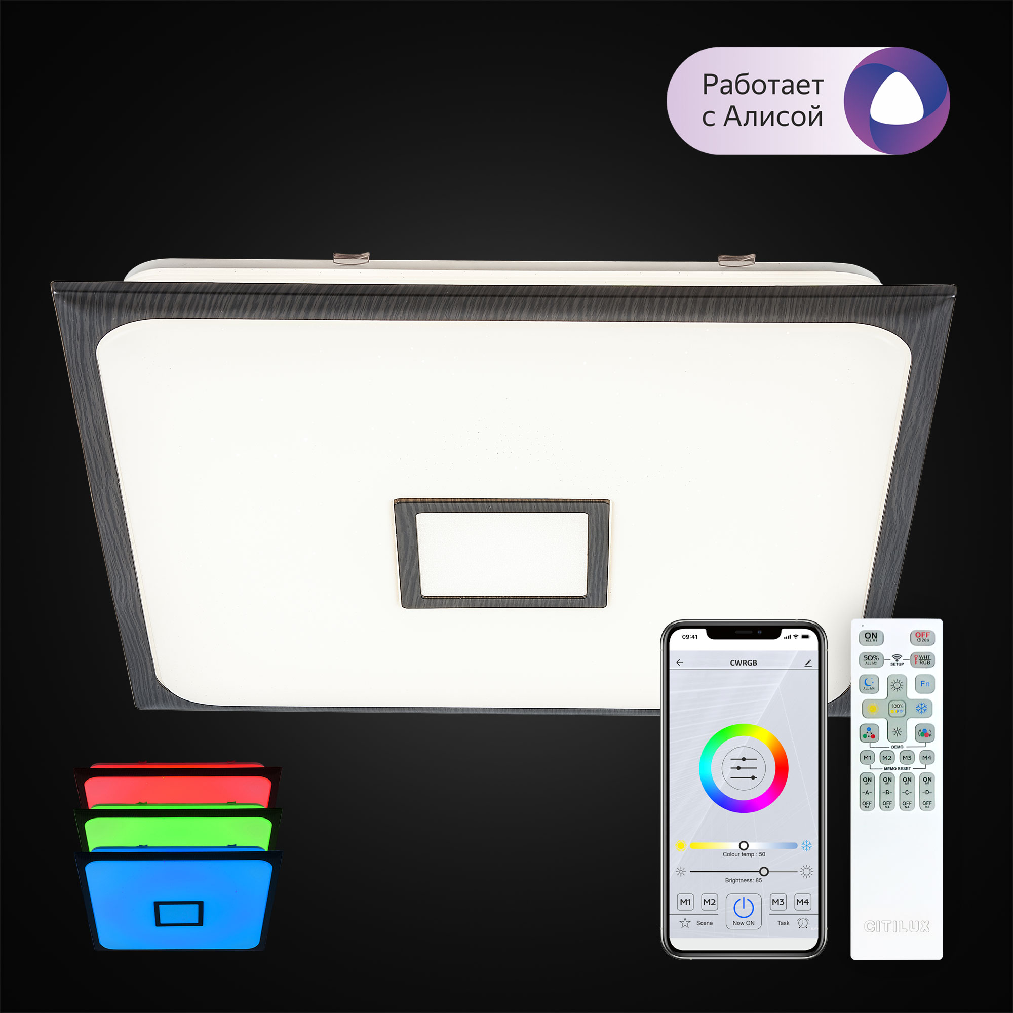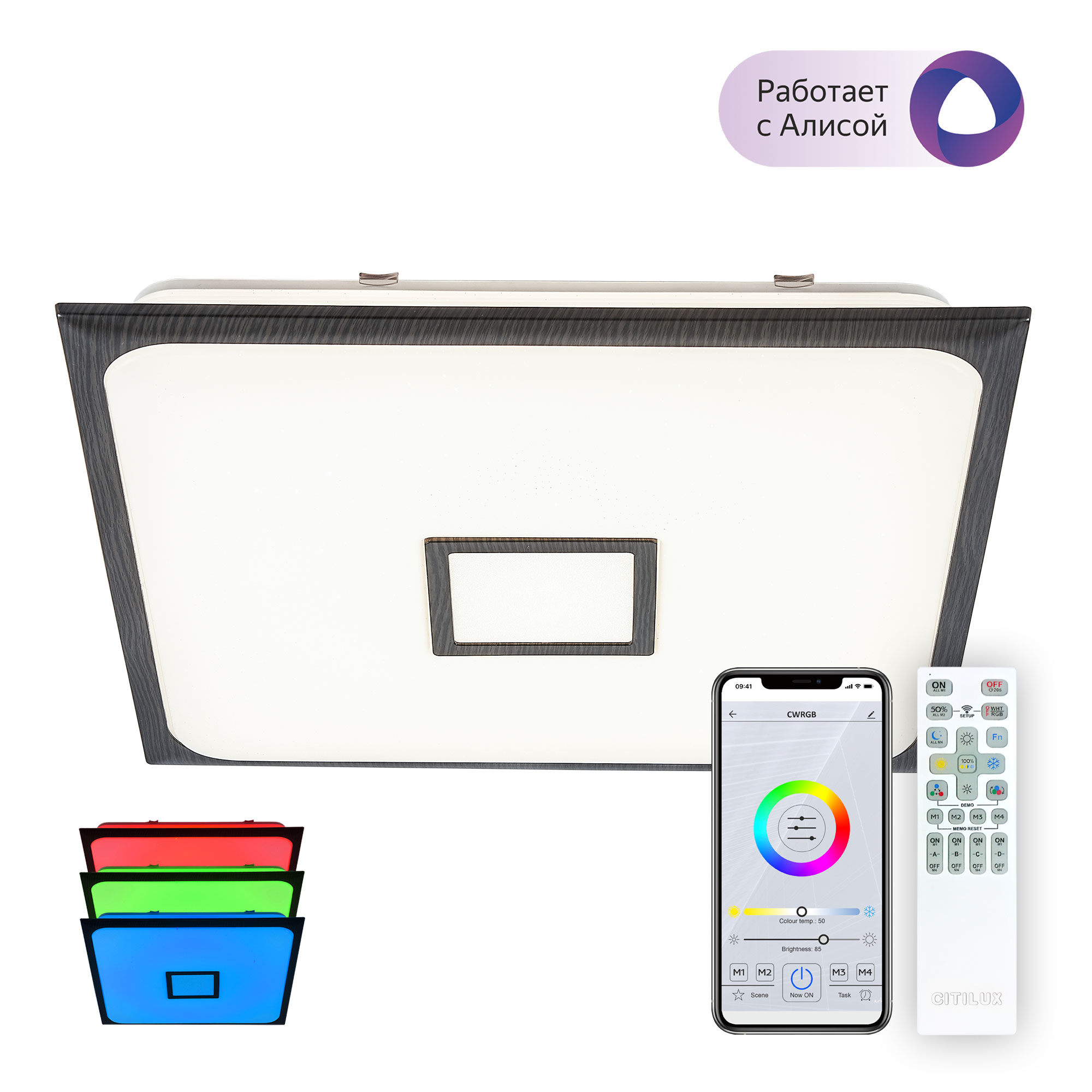 Допускается отличие страны-изготовителя, указанной в характеристиках. Линии производства могут находиться в нескольких государствах. Это не влияет на качество изготовления товара: все заводы данного бренда работают по общим стандартам, а готовые изделия проходят соответствующий контроль.Дания Коллекция Старлайт Смарт ЦветЦвет арматуры Белый Цвет Венге Материал арматуры Металл Цвет плафона Белый, венге Материал плафона Оптический полимер РазмерыВысота (мм) 85 Длина (мм) 575 Ширина (мм) 575 ЭлектрикаКоличество ламп (шт) 1 Цоколь LED Тип лампы Светодиодная Лампочки в комплекте Лампы в комплекте Мощность лампы (Вт) 90 Общая мощность (Вт) 95 Световой поток 8600 Цветовая температура RGB, 3000-5500 Площадь освещения 16-24 Дополнительная информацияСпособ крепления На основание Степень защиты (IP) IP20 Вес (Кг) 3.762 Диммирование Да Техническая оссобеность Ночной режим, Регулировка яркости, Полностью светодиодная, Регулировка цветовой температуры, RGB Тип управления Пульт ДУ -