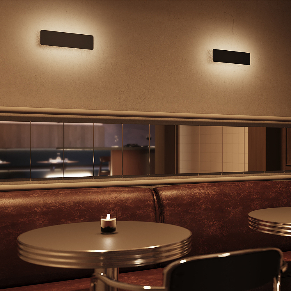 Настенный светильник для дополнительного освещения. Корпус: металл с матовым черным порошковым покрытием. Два размера. Создает мягкий рассеянный свет для декоративной подсветки. Для акцентного освещения стен, ниш и декоративных элементов. Подходит для любых интерьеров.
