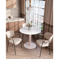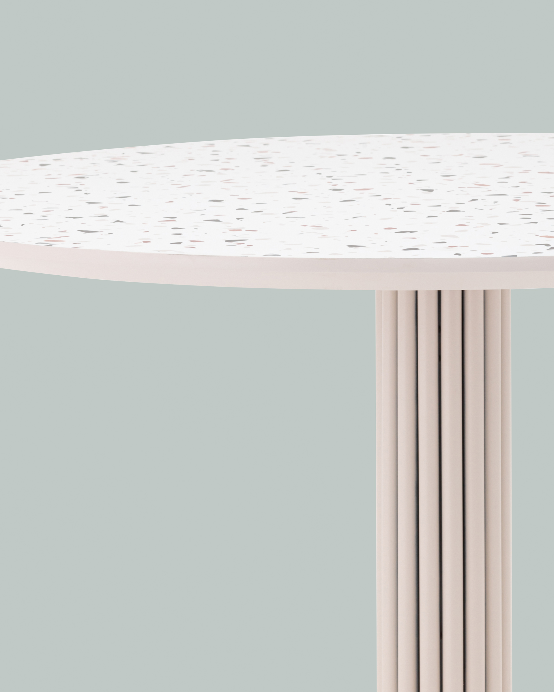 Стол обеденный Stem D90 столешница терраццо ножки плиссе металл