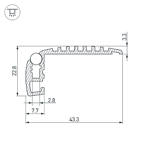 Алюминиевый анодированный компактный профиль для подсветки ступеней, с антискользящей вставкой. Габаритные размеры (L×W×H): 2000x43,2x22,7 мм. Ширина площадки для ленты 5 мм. Заглушки и другие аксессуары приобретаются отдельно. Цена за 1 метр.