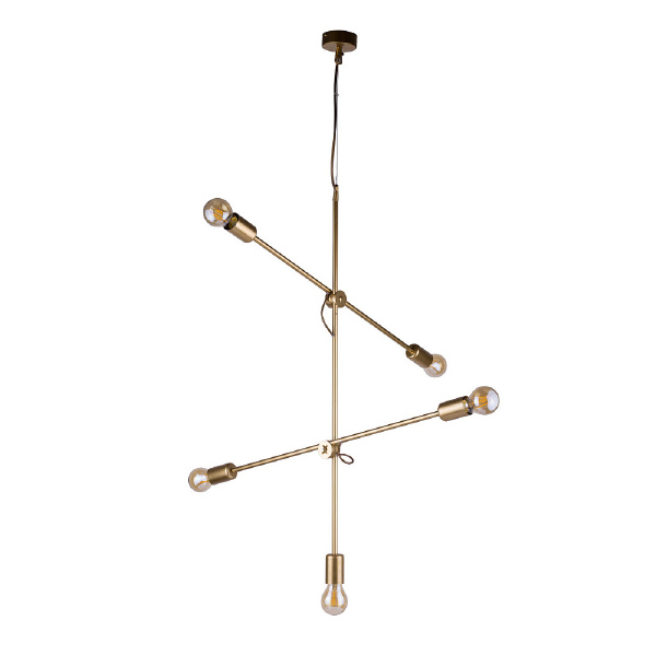 Допускается отличие страны-изготовителя, указанной в характеристиках. Линии производства могут находиться в нескольких государствах. Это не влияет на качество изготовления товара: все заводы данного бренда работают по общим стандартам, а готовые изделия проходят соответствующий контроль.Польша Коллекция Sticks ЦветЦвет арматуры Золото Цвет Золото Материал арматуры Сталь Цвет плафона золото Материал плафона Металл РазмерыВысота (мм) 1200 Ширина (мм) 730 ЭлектрикаКоличество ламп (шт) 5 Цоколь E27 Тип лампы Накаливания Мощность лампы (Вт) 60 Общая мощность (Вт) 300 Напряжение (В) 220 Дополнительная информацияСтепень защиты (IP) IP20 Место установки на потолок Вес (Кг) 1,54 Тип подвеса На цепи -
