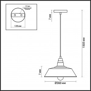 Допускается отличие страны-изготовителя, указанной в характеристиках. Линии производства могут находиться в нескольких государствах. Это не влияет на качество изготовления товара: все заводы данного бренда работают по общим стандартам, а готовые изделия проходят соответствующий контроль.Италия Коллекция Stig ЦветЦвет арматуры Черный Цвет Черный Материал арматуры Металл Цвет плафона Черный Материал плафона Металл РазмерыВысота (мм) 1255 Диаметр (мм) 360 Высота минимальная (мм) 255 Ширина (мм) 360 ЭлектрикаКоличество ламп (шт) 1 Цоколь E27 Тип лампы Накаливания Мощность лампы (Вт) 60 Напряжение (В) 220 Дополнительная информацияВес (Кг) 1,020 Тип подвеса На тросах Количество подвесов Одиночный подвес -