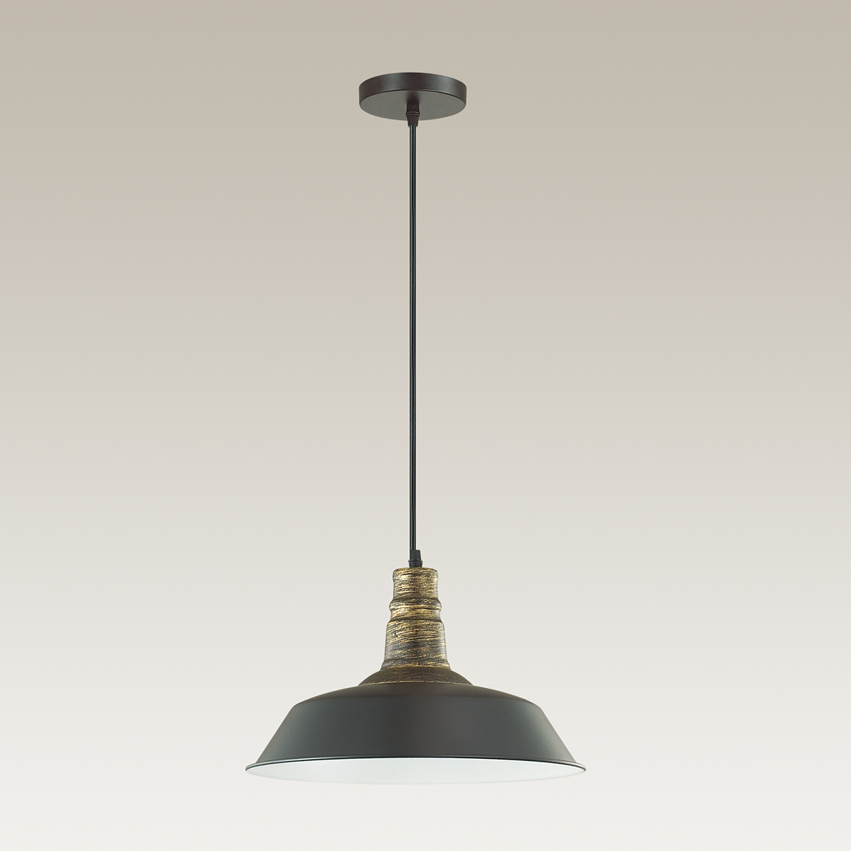 Подвес Stig с черным матовым плафоном и декоративным элементом в цвете античная бронза идеально впишется в интерьер лофт и винтаж.
