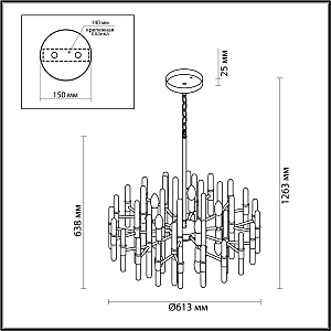 Допускается отличие страны-изготовителя, указанной в характеристиках. Линии производства могут находиться в нескольких государствах. Это не влияет на качество изготовления товара: все заводы данного бренда работают по общим стандартам, а готовые изделия проходят соответствующий контроль.Италия Коллекция Stika ЦветЦвет арматуры золотой Цвет Золото Материал арматуры Металл Цвет плафона прозрачный Материал декора Стекло Материал плафона Стекло РазмерыВысота (мм) 1263 Диаметр (мм) 613 Высота минимальная (мм) 638 Ширина (мм) 613 ЭлектрикаКоличество ламп (шт) 10 Цоколь E14 Тип лампы Накаливания Мощность лампы (Вт) 40 Общая мощность (Вт) 400 Площадь освещения 20 Дополнительная информацияВес (Кг) 8,400 Тип подвеса На цепи -