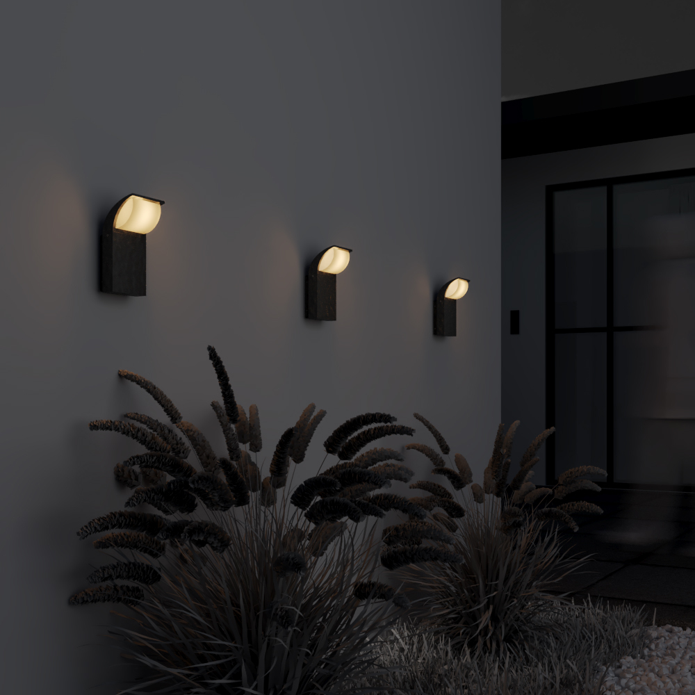 Материал корпуса - алюминий, цвет - графит. Белый матовый рассеиватель. LED-источник света. Цветовая температура 3000К. Наличие встроенного датчика движения у настенной модели. Степень защииты IP65 и IP44 настенной модели с датчиком движения.