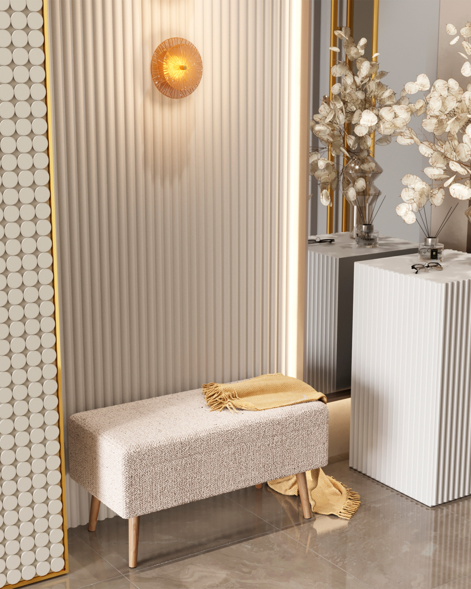 Банкетка Сторми с ящиком, бежевый