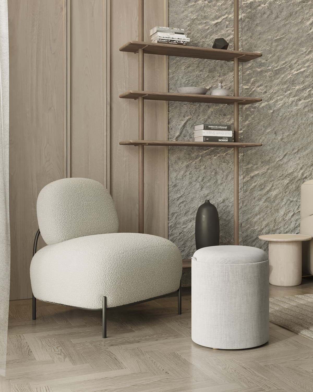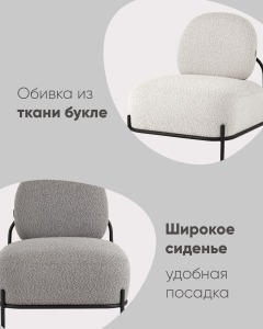 Кресло Стоун обивка ткань букле молочный