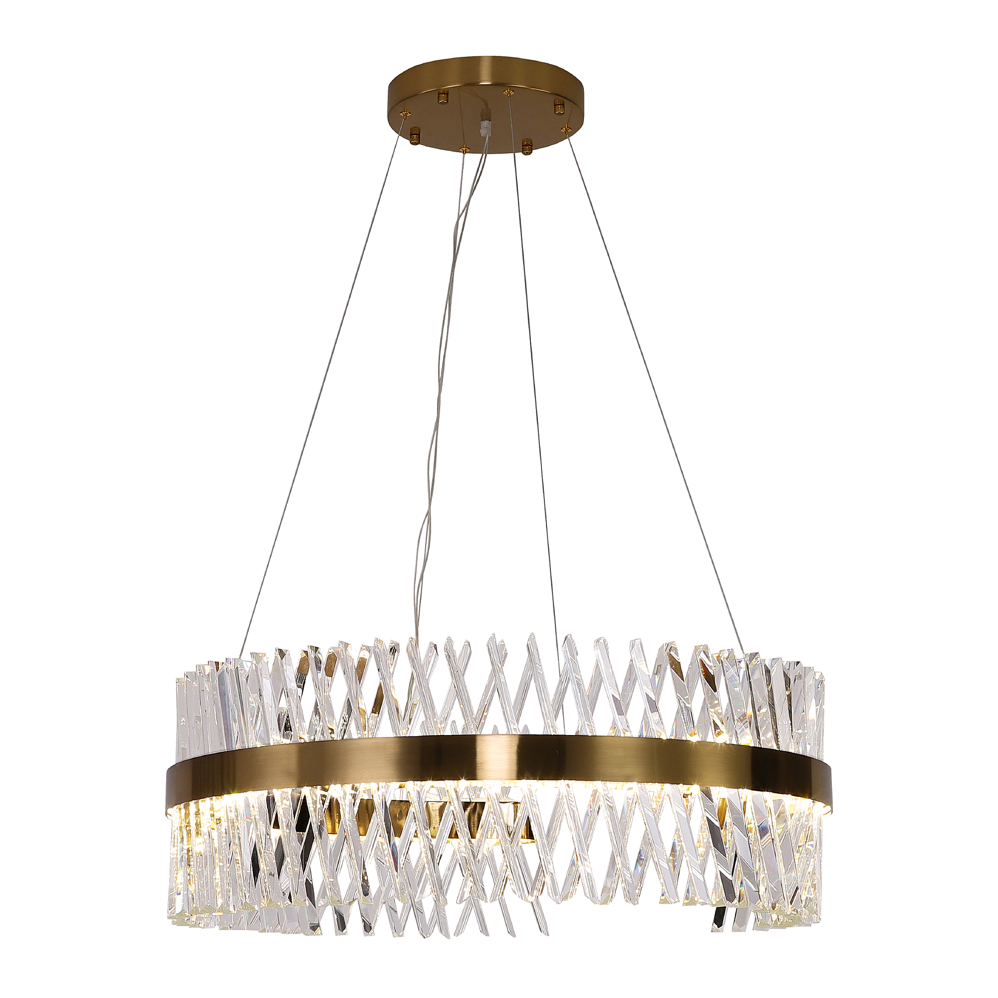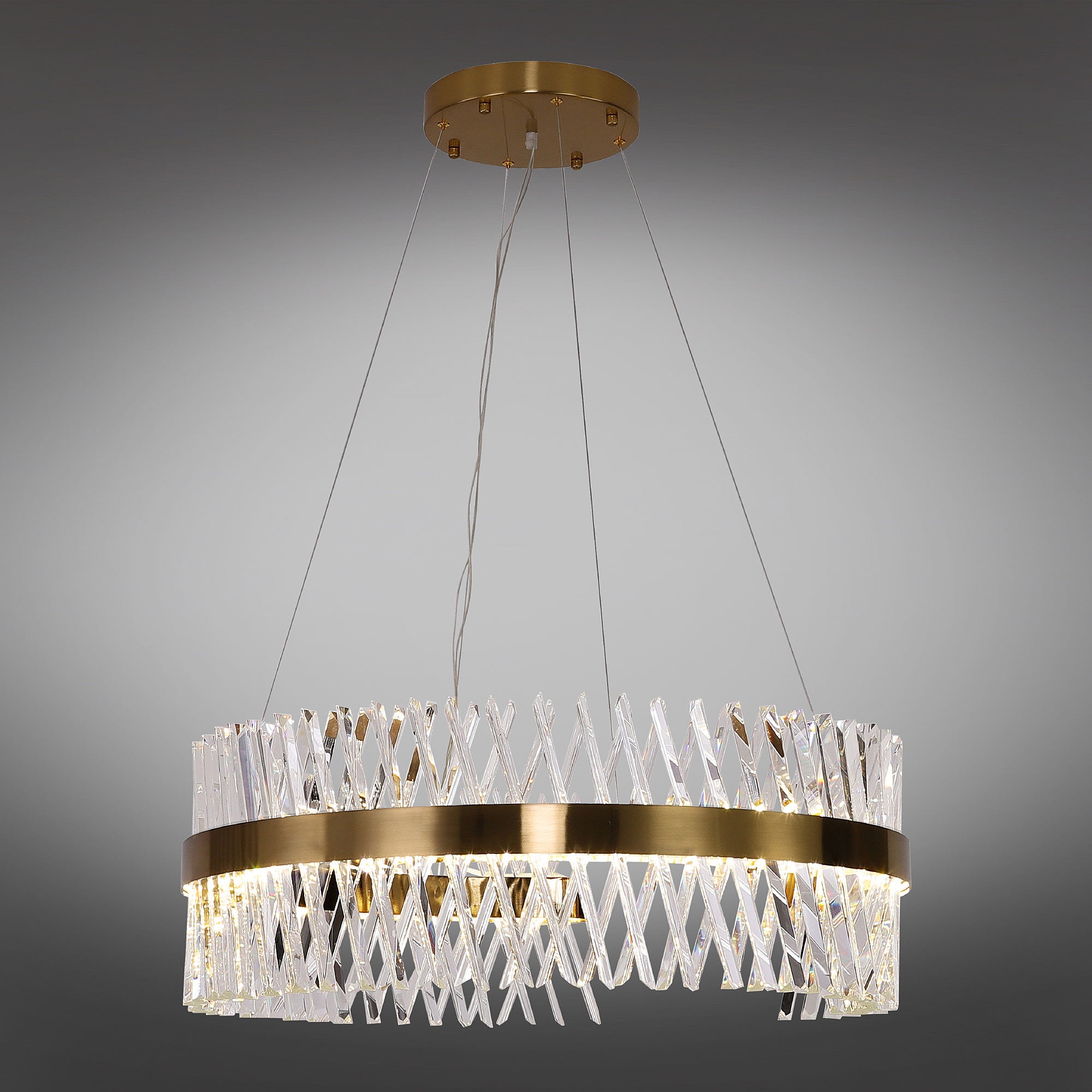 Допускается отличие страны-изготовителя, указанной в характеристиках. Линии производства могут находиться в нескольких государствах. Это не влияет на качество изготовления товара: все заводы данного бренда работают по общим стандартам, а готовые изделия проходят соответствующий контроль.Китай Коллекция Strasatti ЦветЦвет арматуры Золото Цвет Золото Материал арматуры Металл Цвет декора прозрачный Материал декора Хрусталь РазмерыВысота (мм) 1500 Диаметр (мм) 600 Высота минимальная (мм) 800 Ширина (мм) 600 ЭлектрикаКоличество ламп (шт) 1 Цоколь LED Лампочки в комплекте Лампы в комплекте Мощность лампы (Вт) 62 Общая мощность (Вт) 62 Световой поток 3410 Дополнительная информацияСпособ крепления Планка Степень защиты (IP) IP20 Вес (Кг) 11.3 Тип подвеса На тросах -