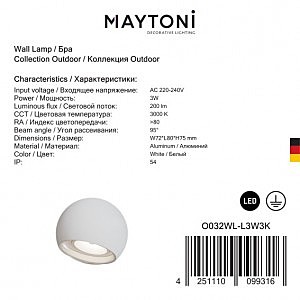 Производитель Maytoni Артикул O032WL-L3W3K Страна
