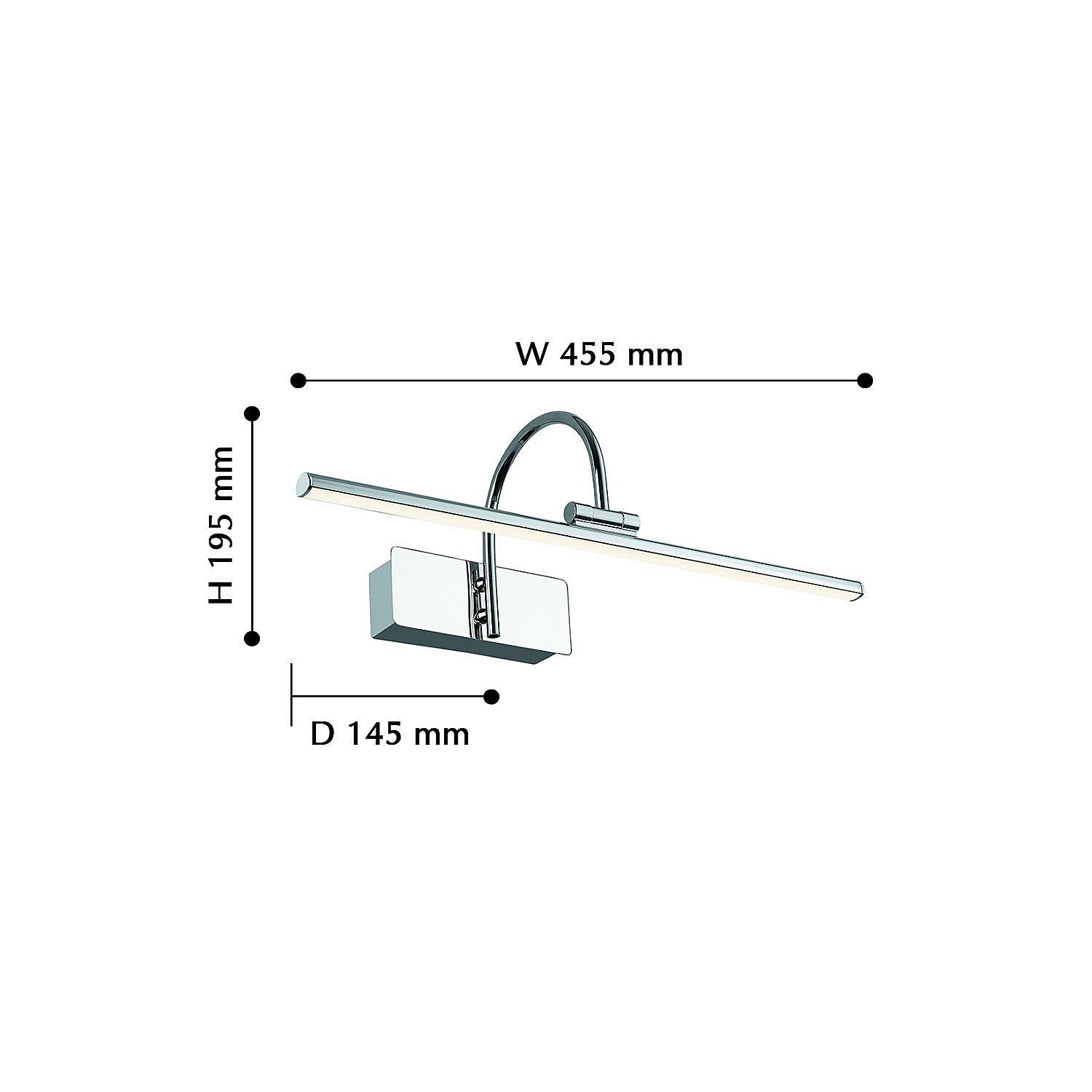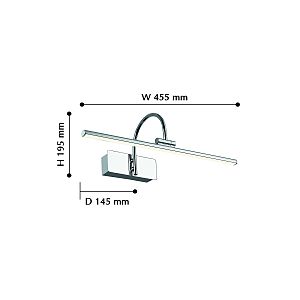 Допускается отличие страны-изготовителя, указанной в характеристиках. Линии производства могут находиться в нескольких государствах. Это не влияет на качество изготовления товара: все заводы данного бренда работают по общим стандартам, а готовые изделия проходят соответствующий контроль.Германия Коллекция Strenuus ЦветЦвет арматуры Хром Цвет Хром Материал арматуры Металл РазмерыВысота (мм) 195 Ширина (мм) 455 Глубина (мм) 145 ЭлектрикаКоличество ламп (шт) 1 Цоколь LED Лампочки в комплекте Лампы в комплекте Мощность лампы (Вт) 8 Общая мощность (Вт) 8 Световой поток 620 Срок службы, ч 25000 Цветовая температура нейтральный (4000k) Площадь освещения 3 Дополнительная информацияСпособ крепления Планка Вес (Кг) 0,6 -