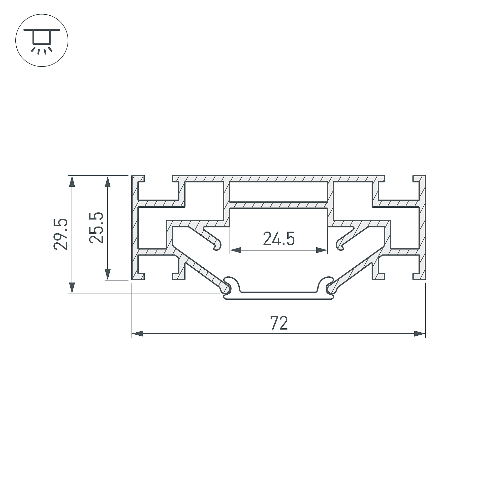 Алюминиевый профиль для натяжных потолков (центральная линия). Решение 2-в-1 - каркас для крепления натяжного потолка и профиль для установки светодиодной ленты. Для дизайнерских решений «линии света» в натяжных потолках. Монтируется к потолку накладным способом. Ширина площадки для ленты 24,5 мм. Длина 2000 мм. Цена за 1 шт.