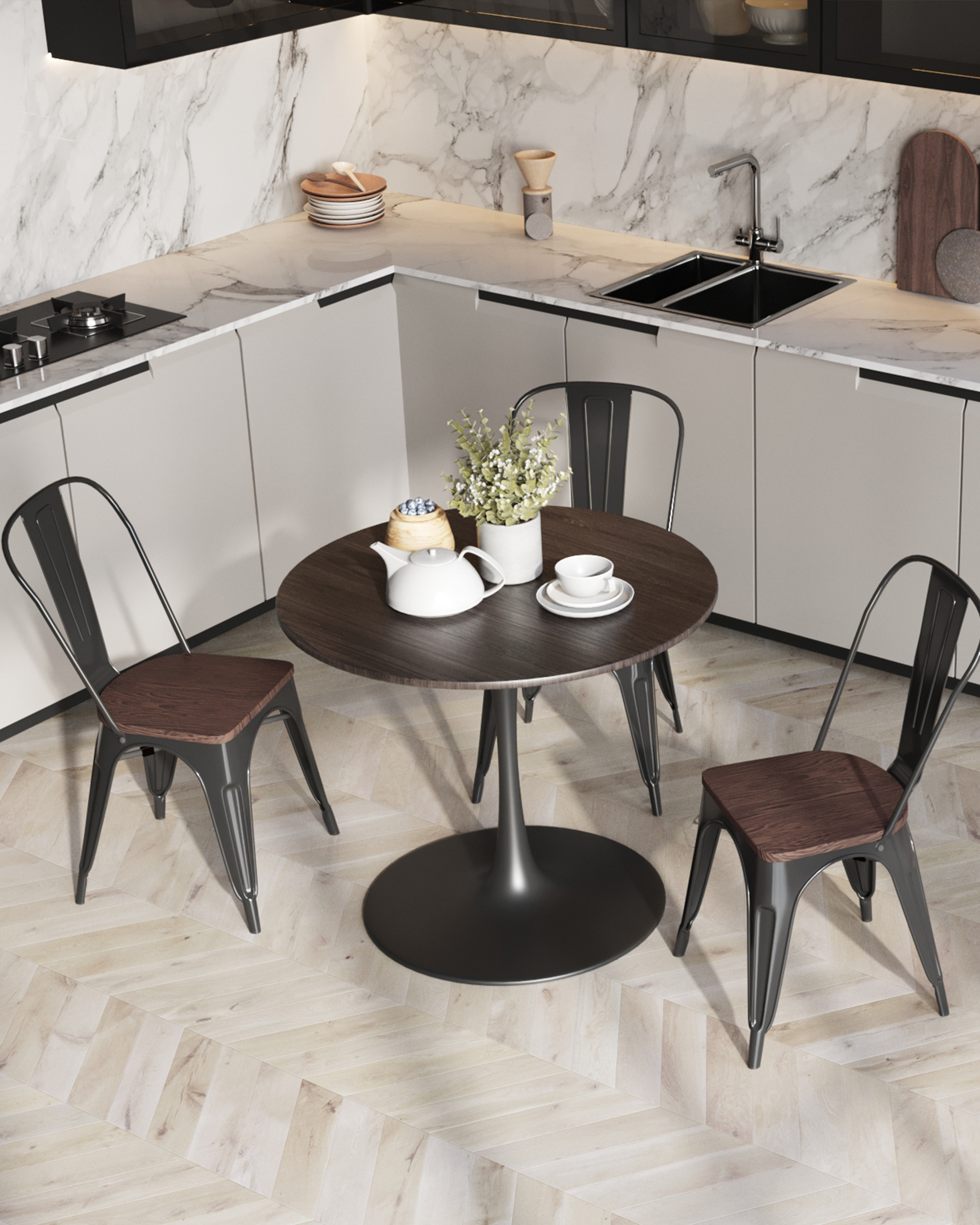 Стол обеденный Strong Round 90х90 темный орех ножка металлическая