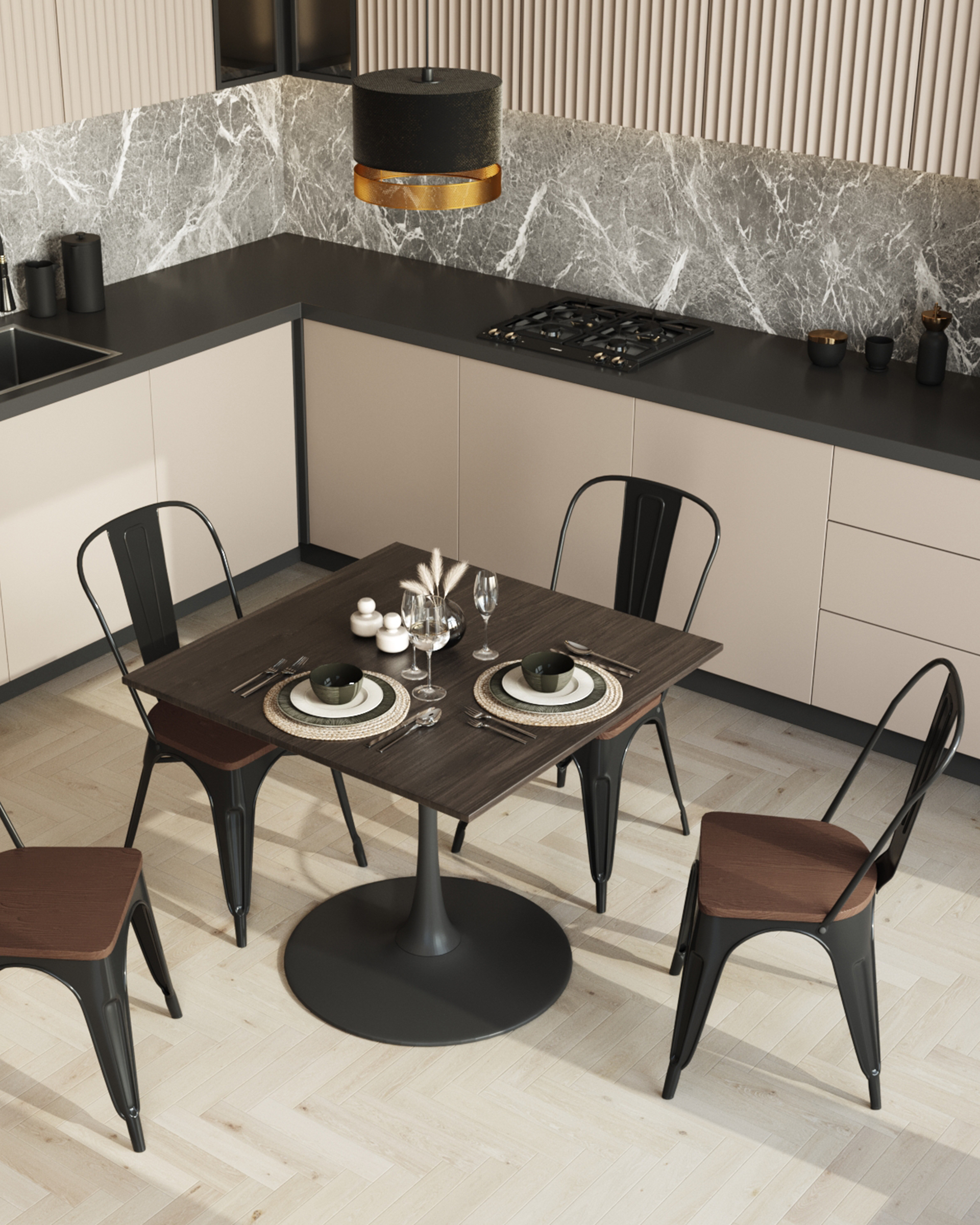 Стол обеденный Strong Square 90х90 темный орех ножка металлическая