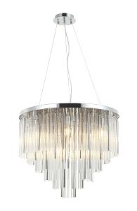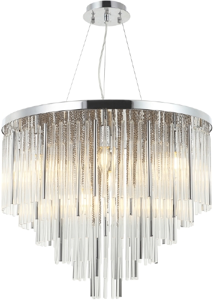 Люстра подвесная из коллекции Style rain выполнена из металла, гальванизированного в цвет хрома, и декорирована гармоничным сочетанием прозрачных стеклянных и металлических трубочек и цепочек, гальванизированных в цвет арматуры. Люстра коллекции выглядит стильно и респектабельно. Премиальное качество и неповторимыи? дизаи?н светильников идеально подои?дут как в классические, так и современные дизайнерские интерьеры.