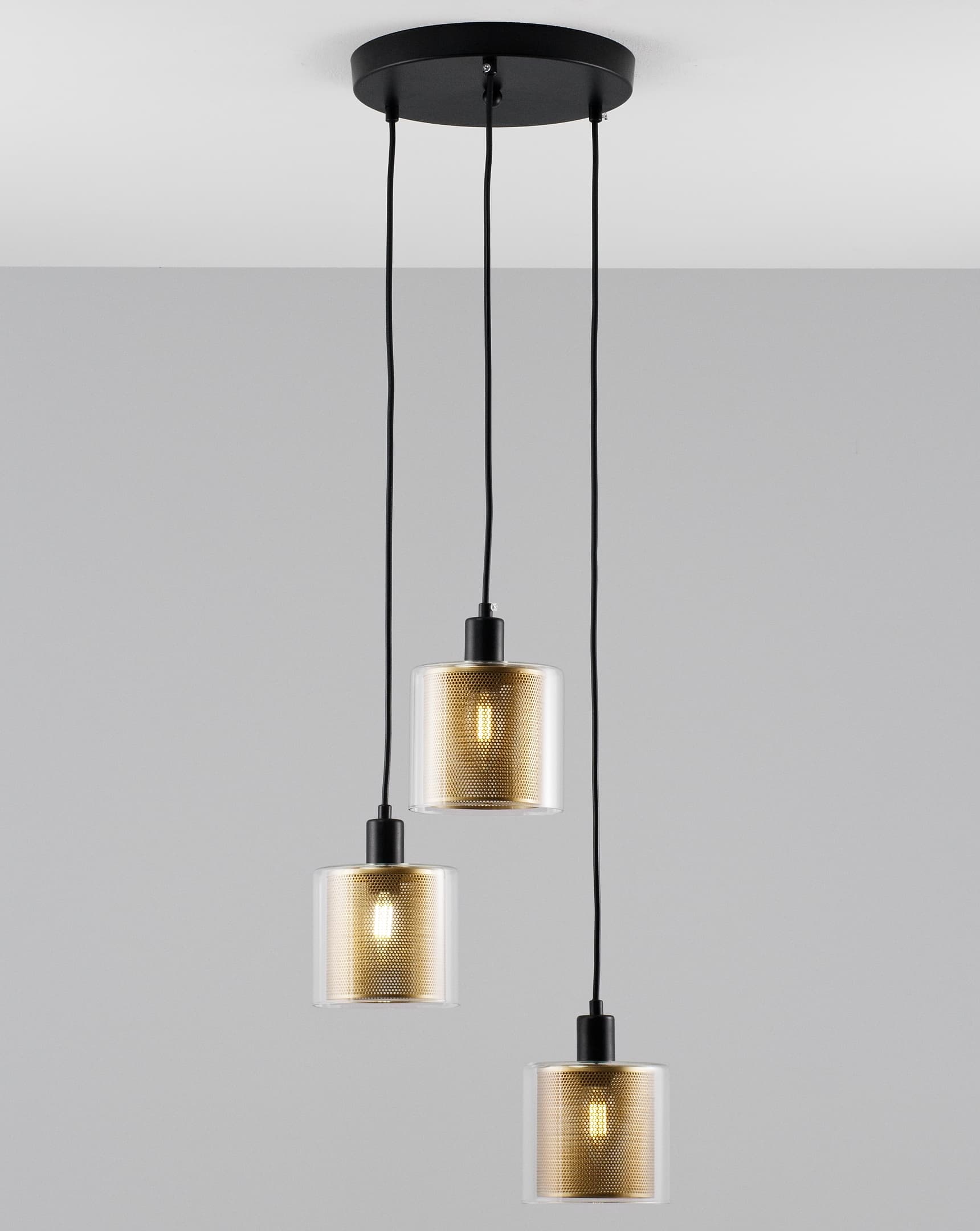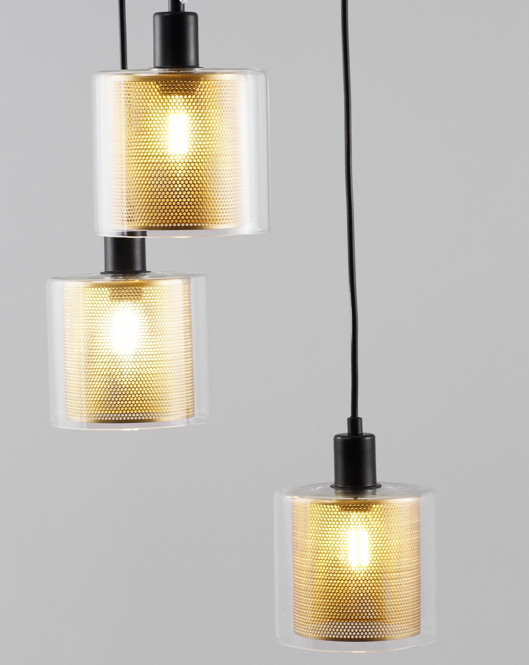 Допускается отличие страны-изготовителя, указанной в характеристиках. Линии производства могут находиться в нескольких государствах. Это не влияет на качество изготовления товара: все заводы данного бренда работают по общим стандартам, а готовые изделия проходят соответствующий контроль.Италия Коллекция Suspent ЦветЦвет арматуры Черный Цвет Черный Материал арматуры Металл Цвет декора черный Цвет плафона прозрачный, золотой Материал плафона Металл, Стекло РазмерыВысота (мм) 1200 Ширина (мм) 340 Глубина (мм) 340 ЭлектрикаКоличество ламп (шт) 3 Цоколь E14 Тип лампы Светодиодная, Накаливания Лампочки в комплекте нет Мощность лампы (Вт) 40 Общая мощность (Вт) 120 Напряжение (В) 220-240 Площадь освещения 9 Дополнительная информацияСпособ крепления на планку Степень защиты (IP) 20 Вес (Кг) 1.9 Тип подвеса На тросах Количество подвесов Одиночный подвес -