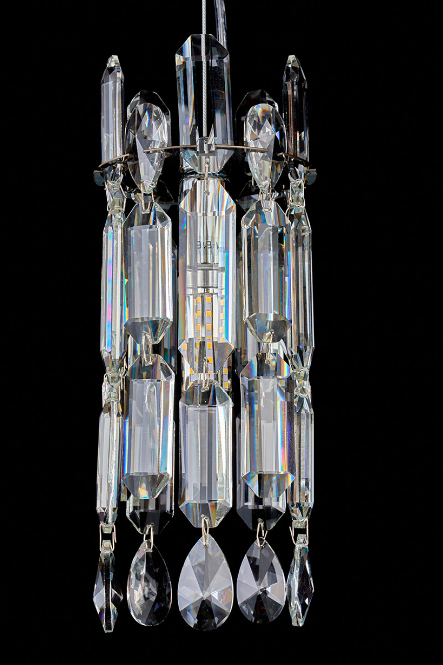 Допускается отличие страны-изготовителя, указанной в характеристиках. Линии производства могут находиться в нескольких государствах. Это не влияет на качество изготовления товара: все заводы данного бренда работают по общим стандартам, а готовые изделия проходят соответствующий контроль.Россия Коллекция Elien ЦветЦвет арматуры Хром Цвет Хром Материал арматуры Металл гальванизированный Цвет плафона прозрачный Материал плафона Хрусталь РазмерыВысота (мм) 1515 Длина (мм) 34 Диаметр (мм) 125 ЭлектрикаКоличество ламп (шт) 1 Цоколь E14 Дополнительная информацияВес (Кг) 1.7 -