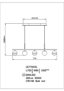 | Артикул | LE7709/5L Black Chrome/Gold |