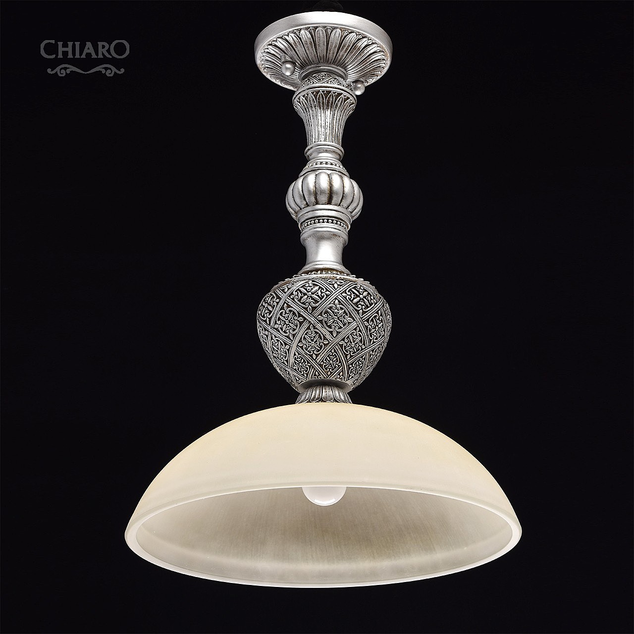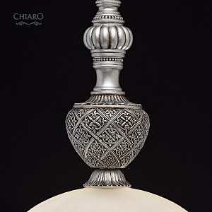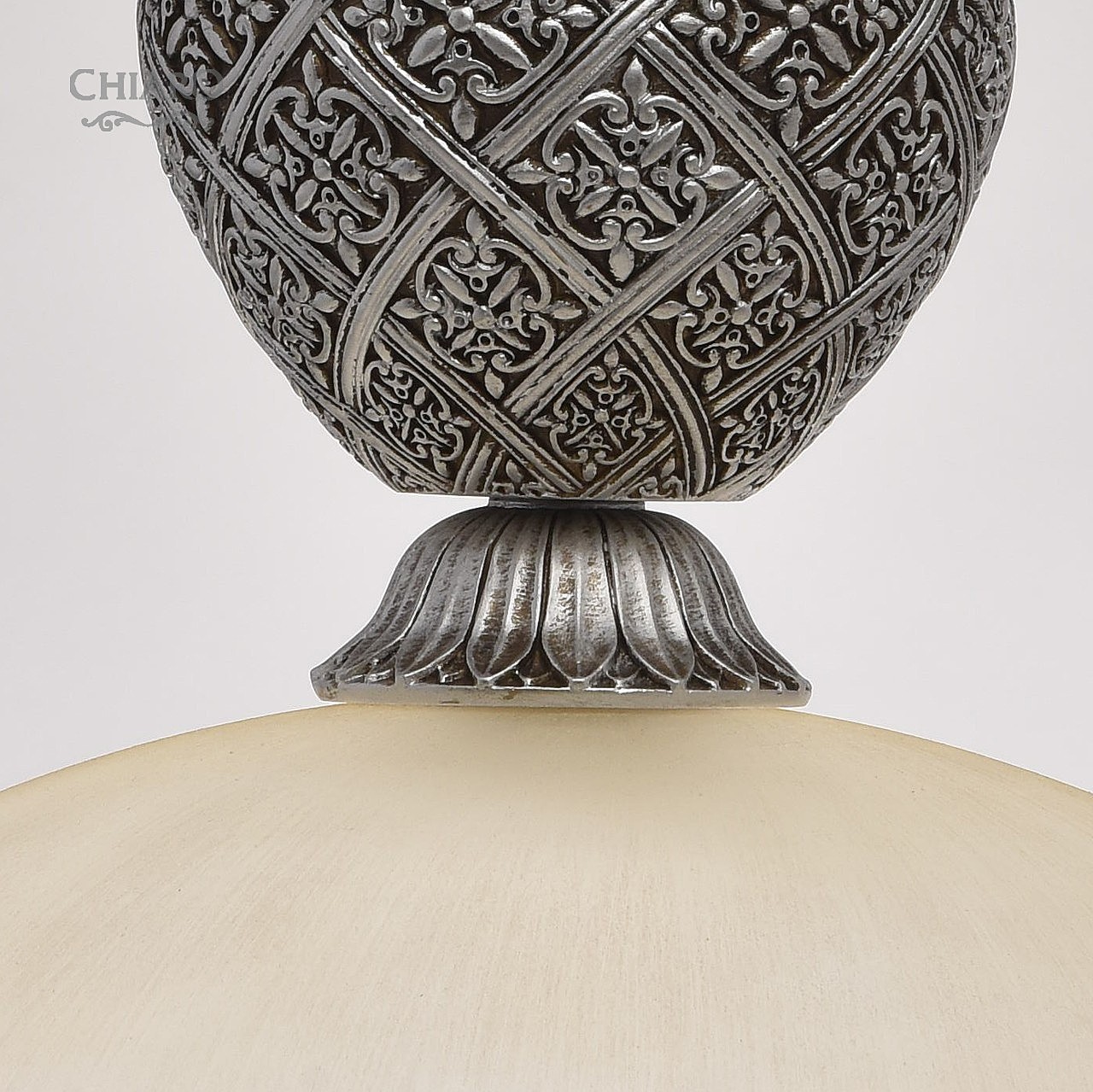 Объёмный стеклянный плафон имеет лёгкое тонирование под старину. Основание цвета серебра с эффектом патины укр